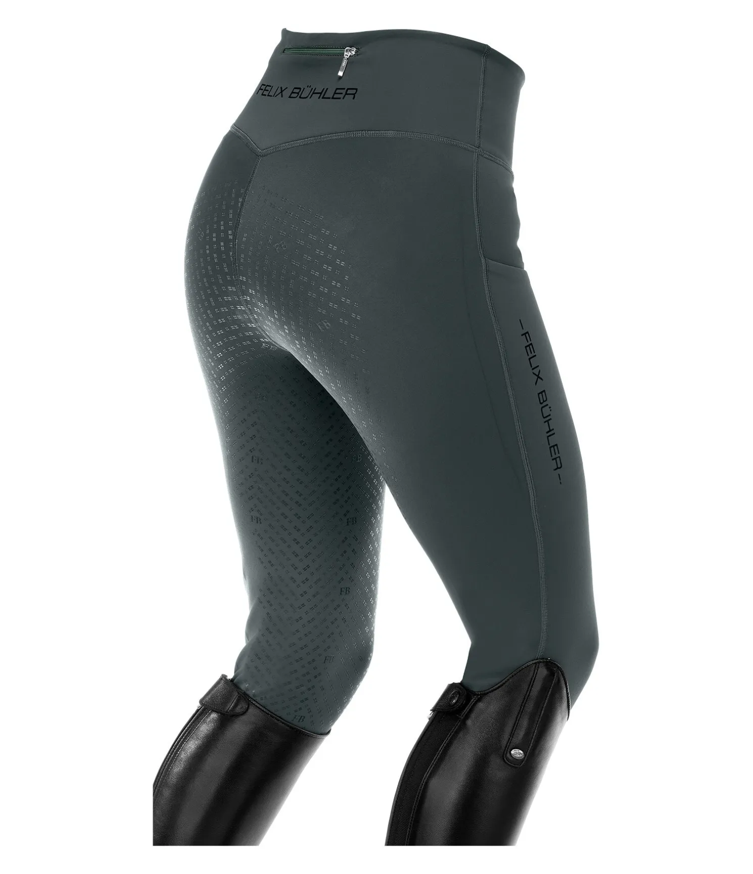 Super legging d’équitation d’hiver en matière stretch douce et extensible dans 4 directions avec fond intégral en silicone. Coupe ajustée. Respirant et à séchage rapide. 2 poches pour téléphone portable, une poche zippée derrière. Imprimés Felix Bühler en silicone, large ceinture avec passants, sans coutures aux genoux, bas de jambe extensible. 78 % polyester, 22 % élasthanne.
