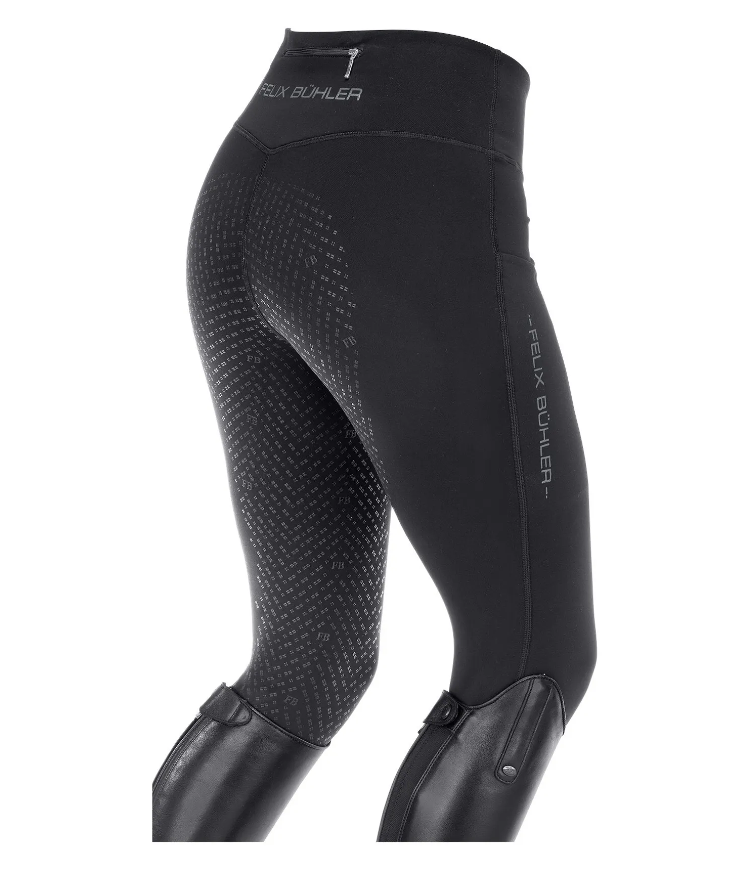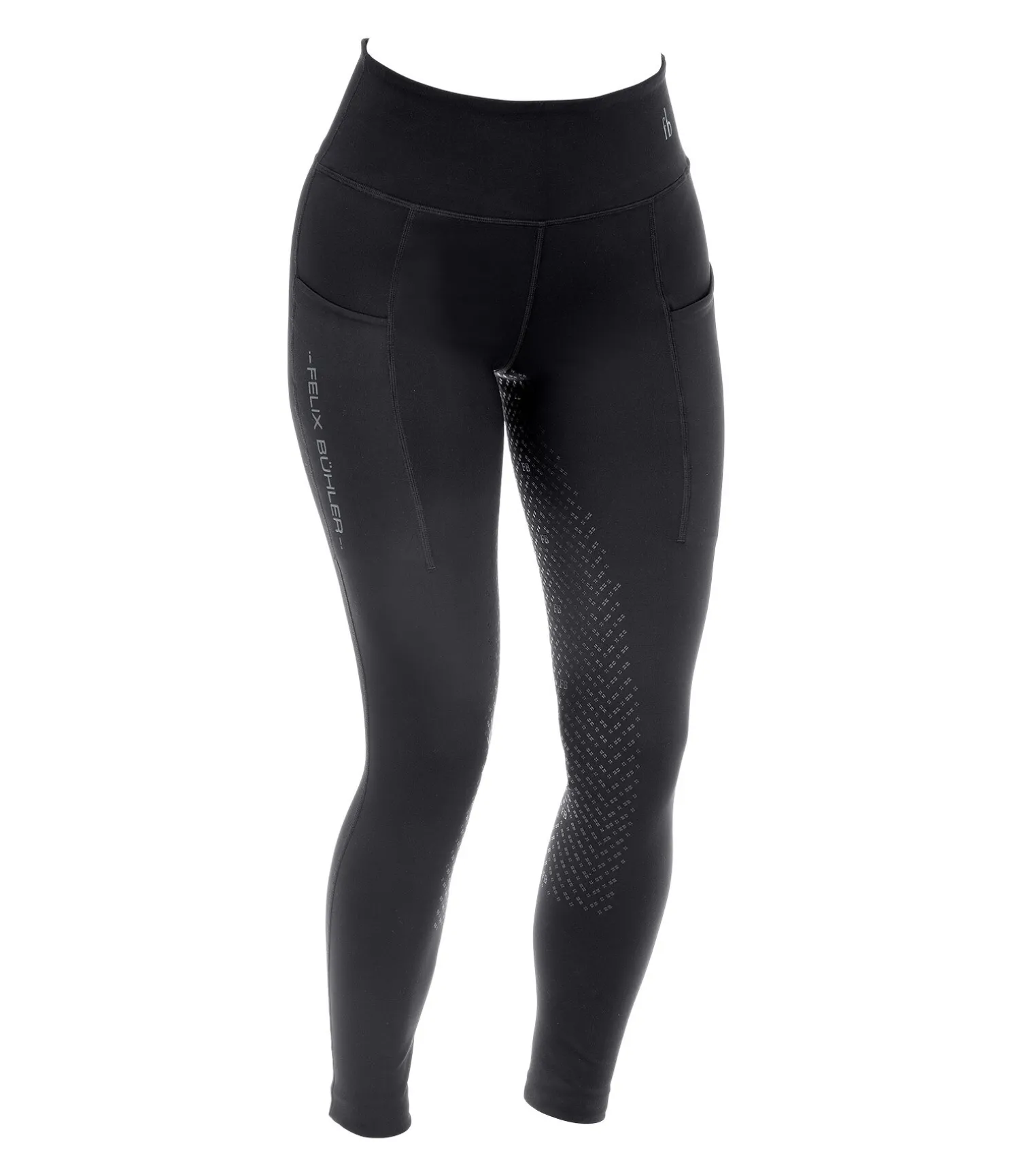 Super legging d’équitation d’hiver en matière stretch douce et extensible dans 4 directions avec fond intégral en silicone. Coupe ajustée. Respirant et à séchage rapide. 2 poches pour téléphone portable, une poche zippée derrière. Imprimés Felix Bühler en silicone, large ceinture avec passants, sans coutures aux genoux, bas de jambe extensible. 78 % polyester, 22 % élasthanne.