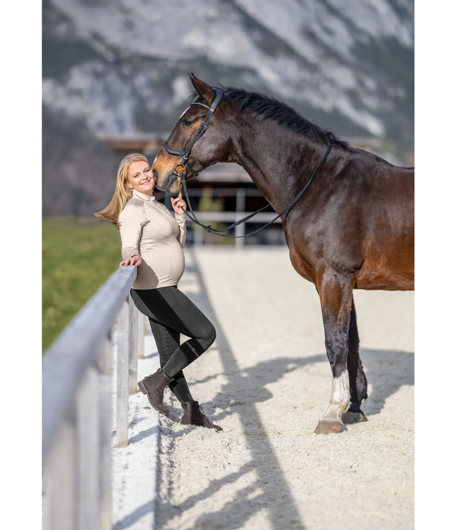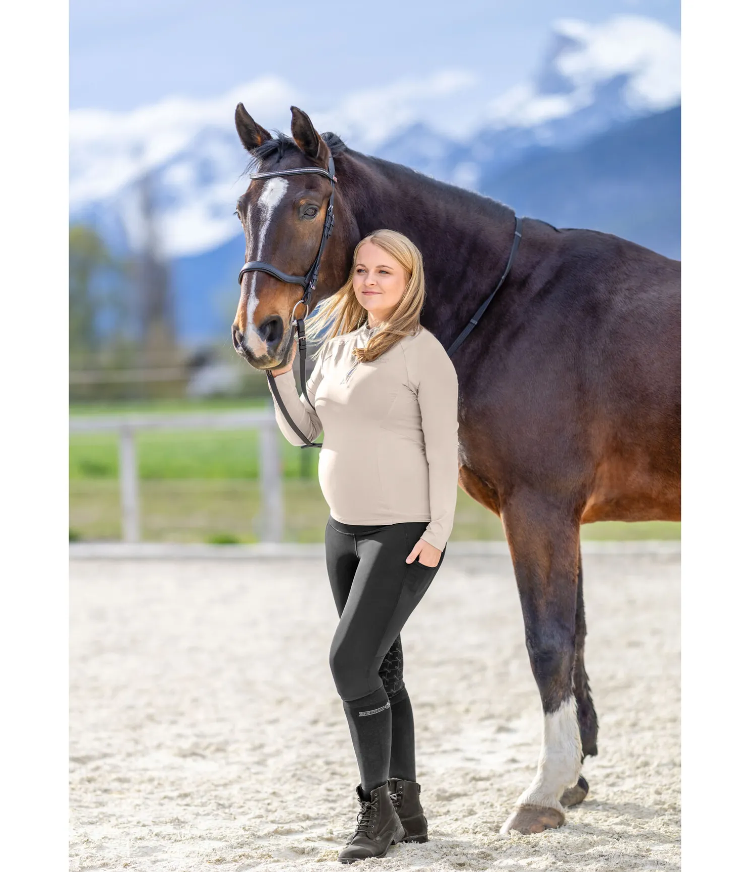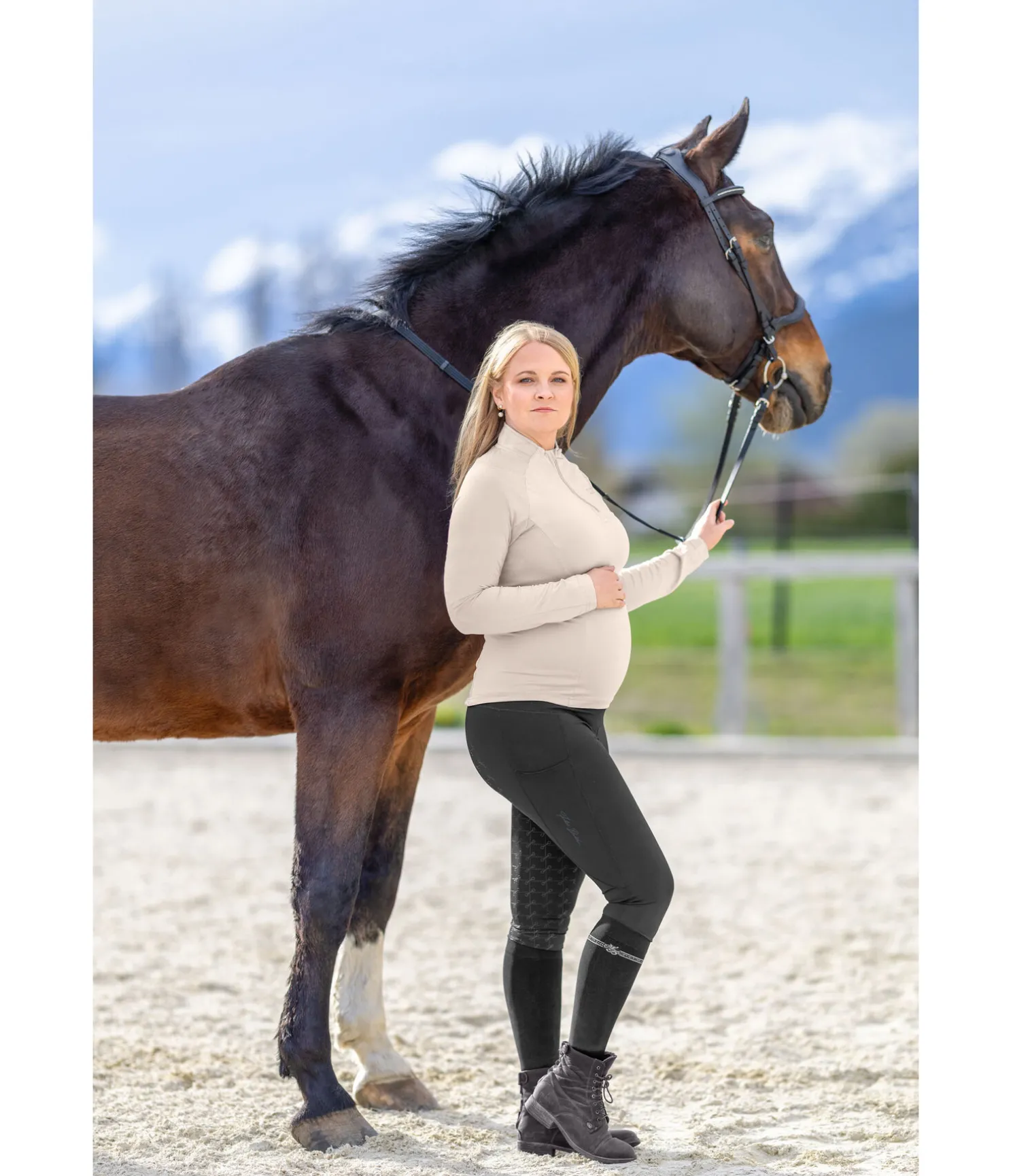 Notre best-seller en version hivernale. Legging d’équitation très confortable en matière stretch de qualité supérieure extensible dans 4 directions pour s’adapter à la grossesse. Le legging couvre entièrement le ventre et conserve son maintien parfait même s’il est très sollicité. Fond intégral en silicone à motif de nors. Respirant et à séchage rapide. Ceinture de grossesse extra-large en matière extensible. Jambes et assise en matière thermique élastique, molletonnée et chaude. 2 poches latérales pour téléphone portable, sans coutures aux genoux, bas de jambe extensible, imprimés Felix Bühler. Ceinture 78 % polyester, 22 % élasthanne ; matière thermique 60 % polyester (recyclé), 33 % polyamide (recyclé), 7 % élasthanne.