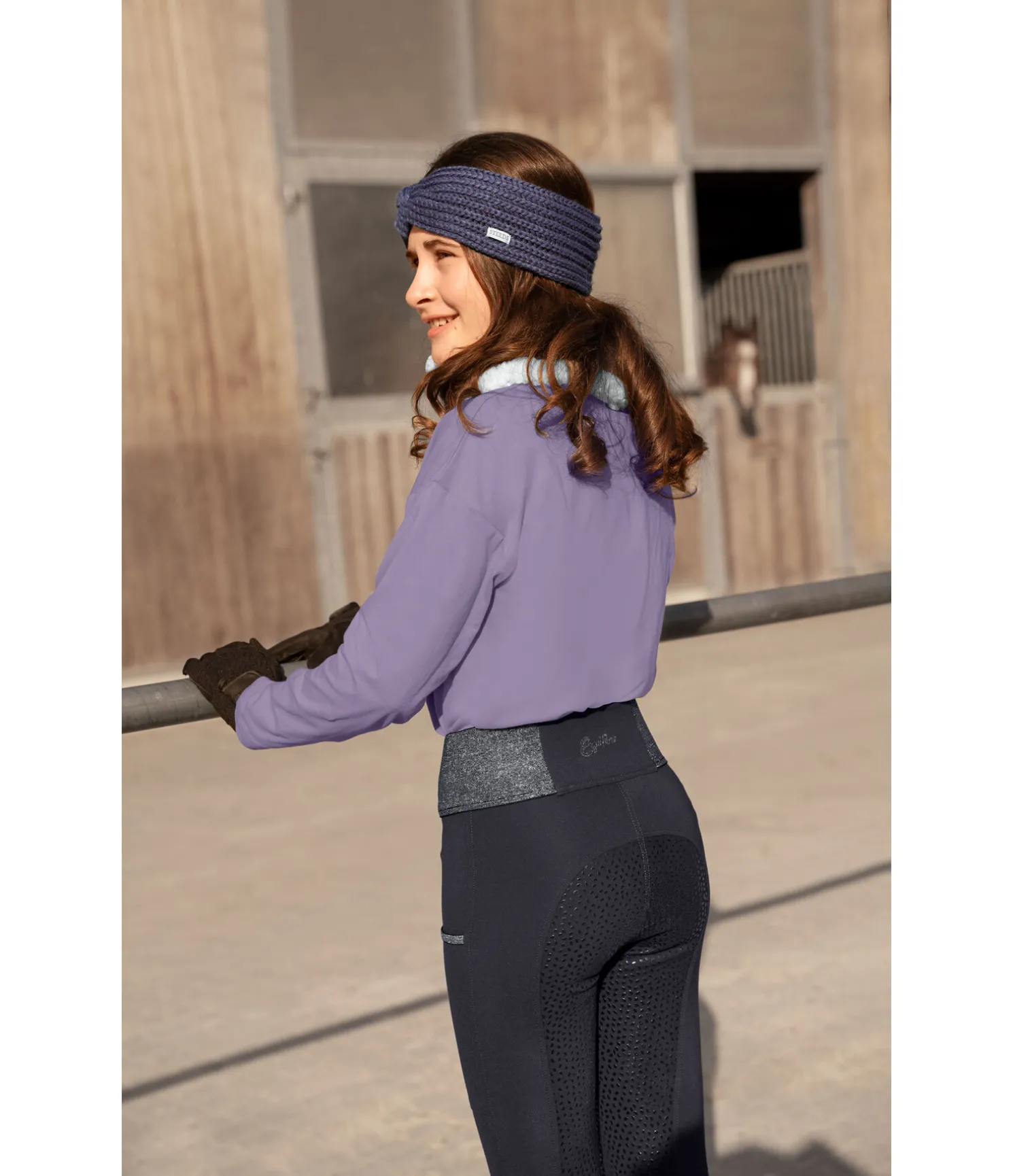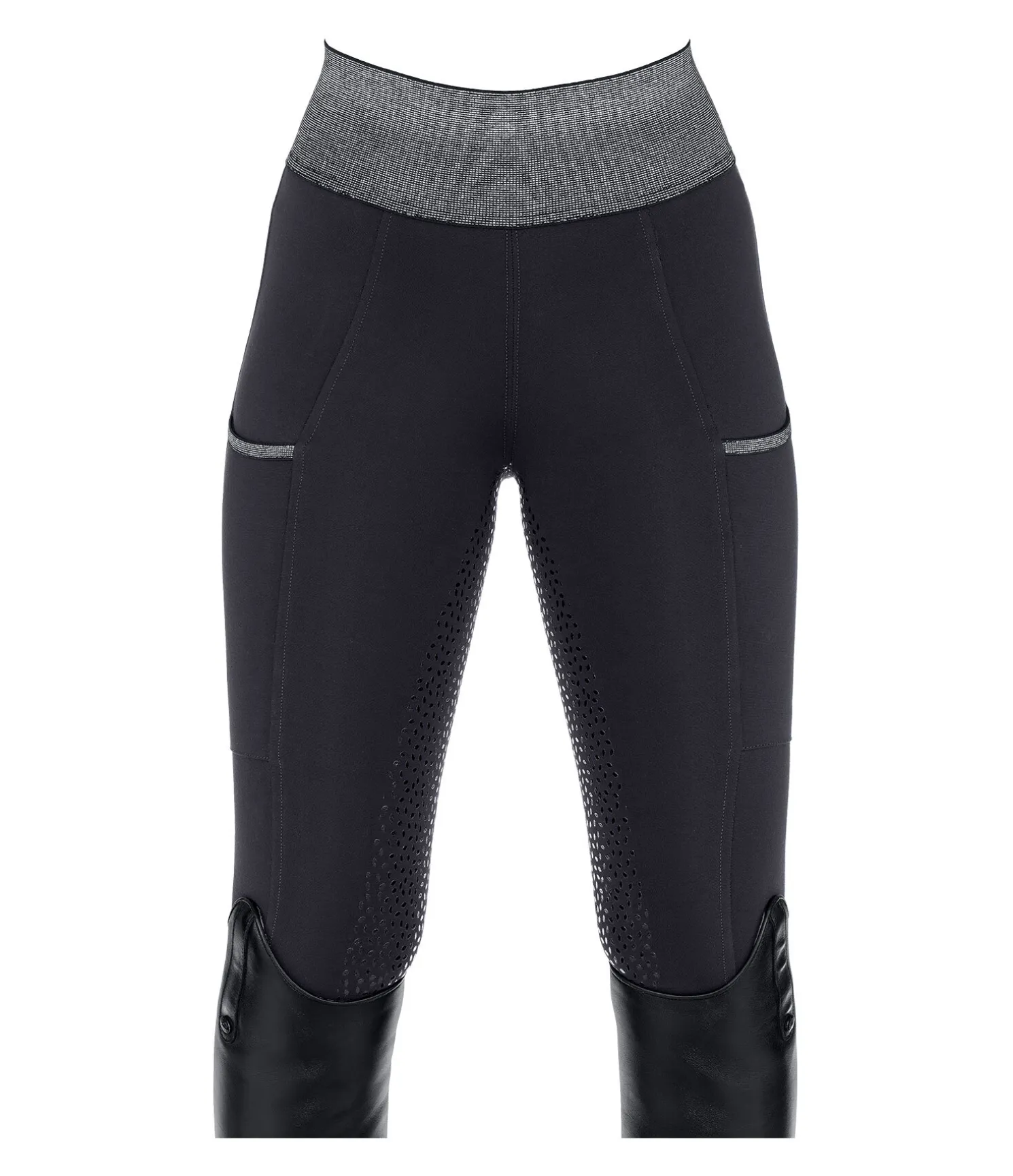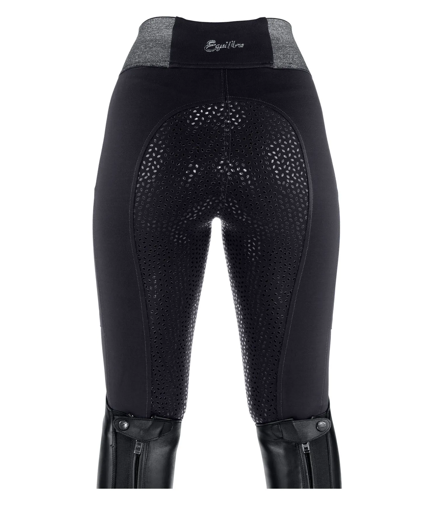 Legging d’équitation sportswear à fond intégral grip siliconé. Matière stretch respirante, extensible dans 4 directions et ultra confortable. Ceinture pailletée élastiquée. Poche latérale pour téléphone portable. 68 % viscose, 27 % polyamide, 5 % élasthanne.