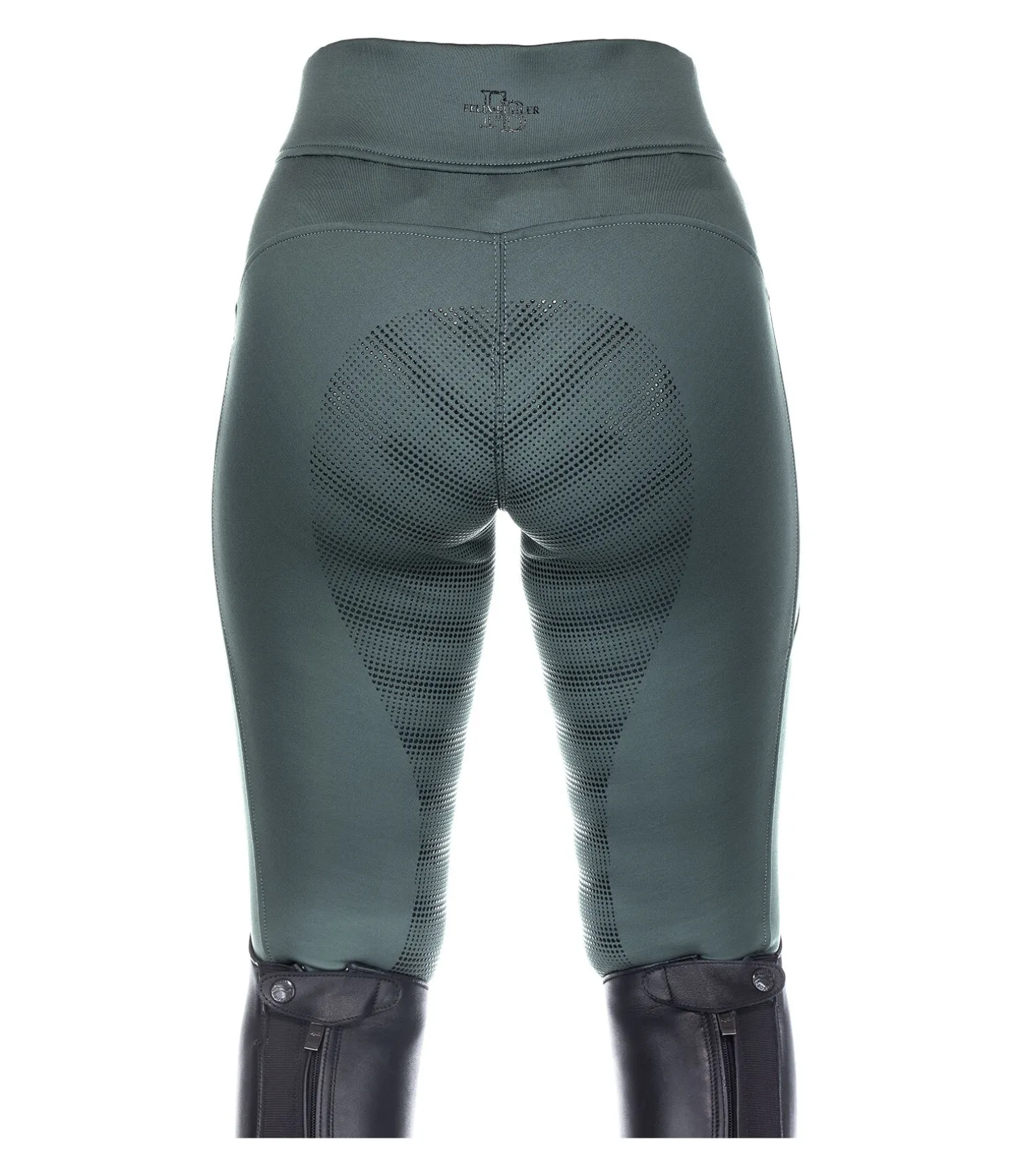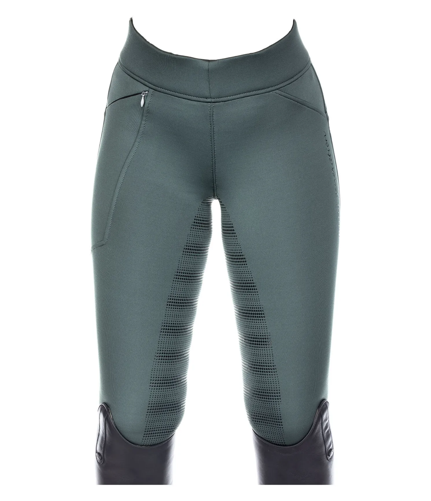 Legging d’équitation thermique ultra confortable. Taille haute. Fond intégral grip en silicone. Matière stretch douce et respirante. Séchage rapide. Poche latérale zippée pour téléphone portable. Logo brodé à l’arrière. 86 % polyester, 14 % élasthanne.