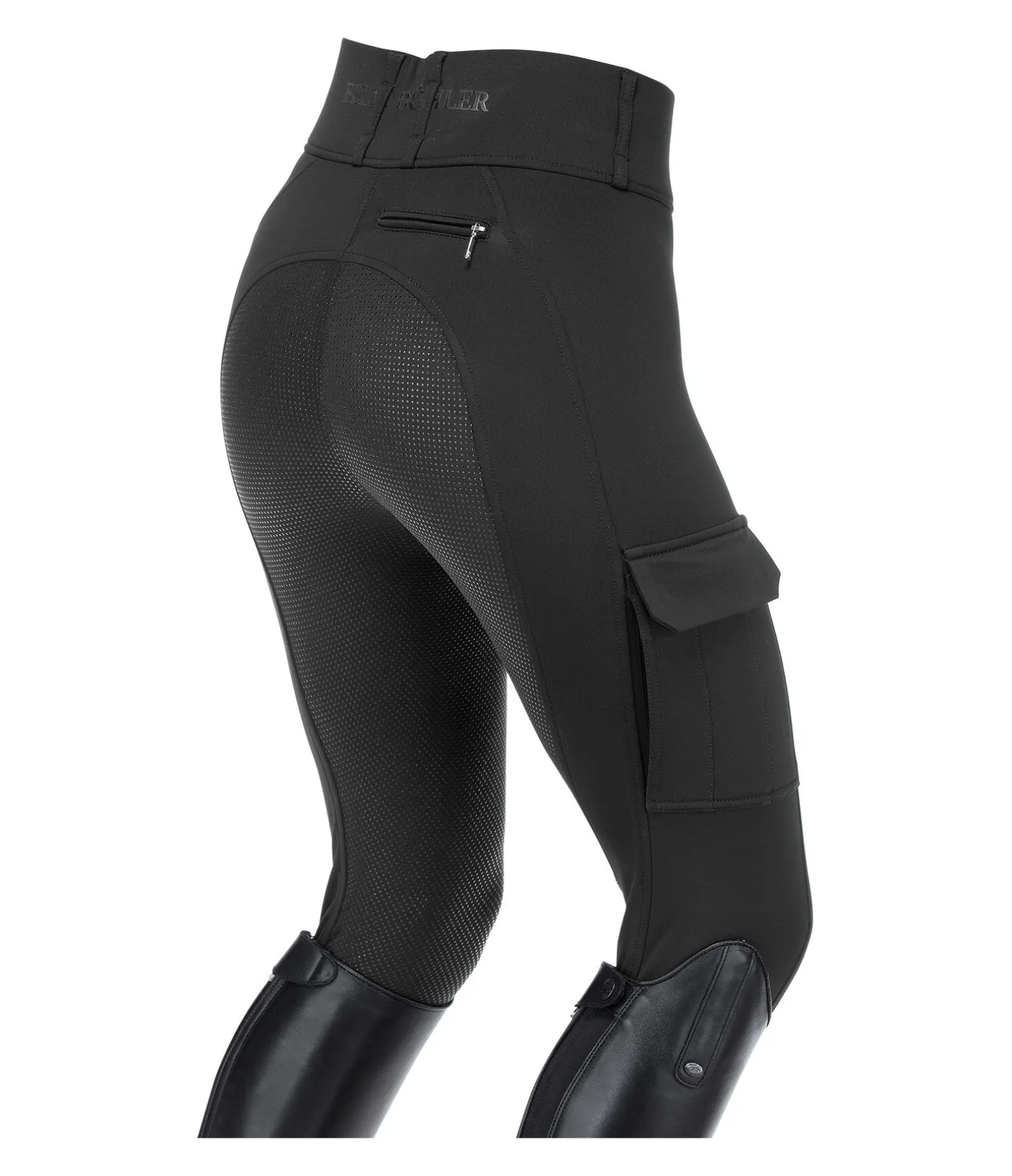 Legging d’équitation cargo tendance à fond intégral en silicone. Matière stretch douce, respirante et extensible dans 4 directions. Séchage rapide. 1 poche cargo avec boutons-pression sur chaque cuisse et 1 poche zippée supplémentaire. 1 poche arrière zippée. Imprimé siliconé Felix Bühler. Ceinture large avec passants. Sans coutures sur les genoux. Bas de jambe extensible. 78 % polyester, 22 % élasthanne.