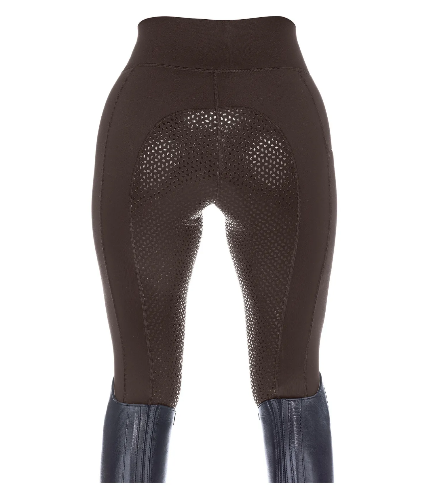 Legging d’équitation extensible avec fond intégral grip en silicone. Extérieur lisse et intérieur molletonné. Ceinture extra large élastiquée. Poche zippée pour téléphone portable sur la cuisse. Bas de jambe extensible sans patte auto-agrippante. 86 % polyester, 14 % élasthanne.