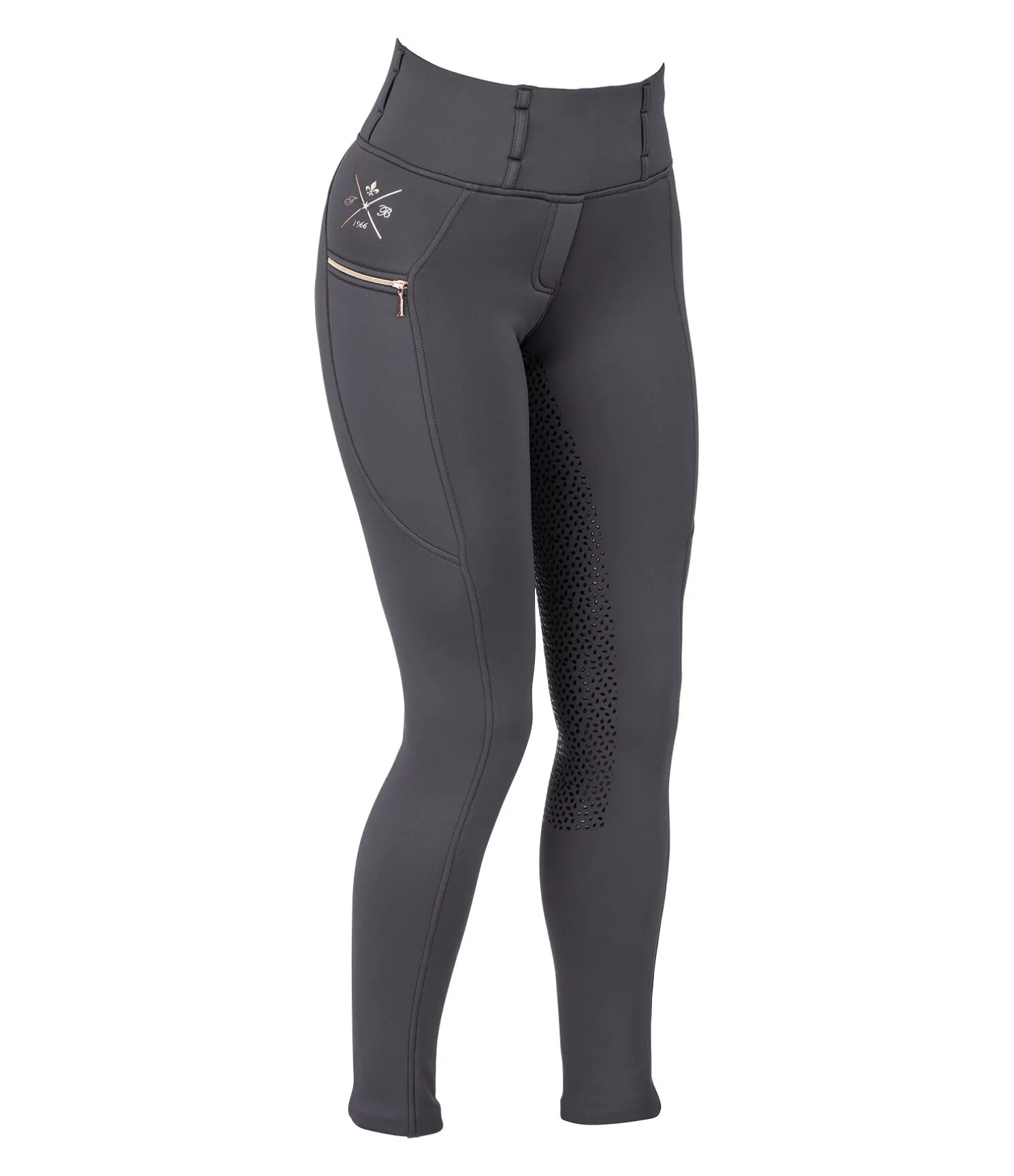 Legging d’équitation chaud. Fond intégral en silicone. Matière stretch respirante extensible dans 4 directions. Séchage rapide. Intérieur molletoné. Imprimés Felix Bühler. Ceinture large avec passants. Une poche latérale zippée pour téléphone portable. Aucune couture au niveau des genoux. Bas de jambe extensible. 60 % polyester, 33 % polyamide, 7 % élasthanne.