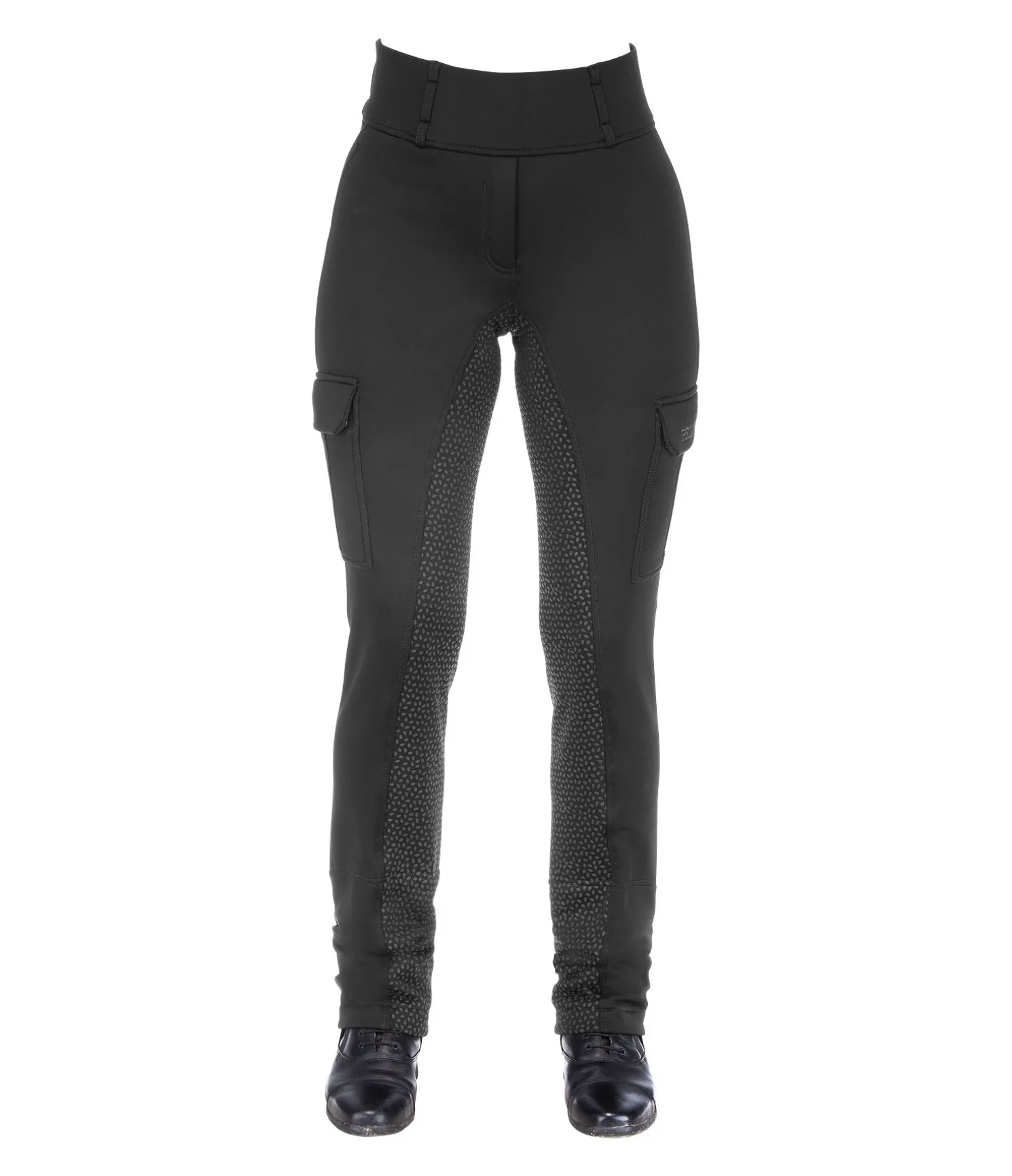 Legging d’équitation jodhpur cargo chaud à fond intégral grip en silicone. Matière stretch extra douce, respirante et extensible dans 4 directions. Séchage rapide. Intérieur molletonné. Coupe bootcut. 1 poche cargo avec boutons-pression sur chaque cuisse et 1 poche zippée supplémentaire. 1 poche arrière zippée. Ceinture extra large avec passants. Sous-pieds élastiqués réglables. 60 % polyester, 33 % polyamide, 7 % élasthanne.
