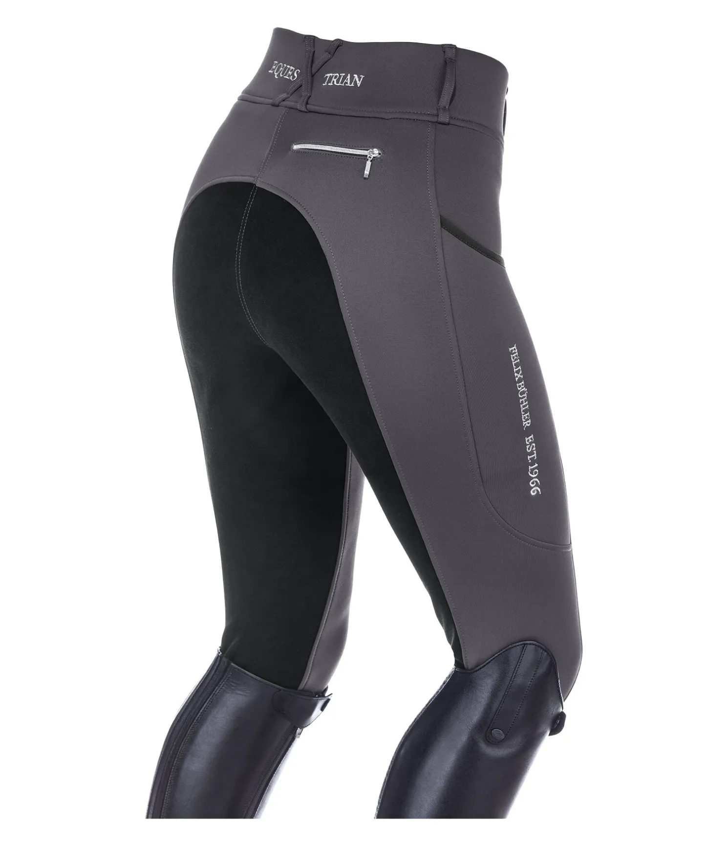 Durable ! Legging d’équitation extra chaud à fond intégral imitation cuir. Matière stretch douce et respirante, extensible dans 4 directions. Séchage rapide. Intérieur molletonné. Broderie Felix Bühler. Ceinture large avec passants. Une poche latérale pour téléphone portable et une poche zippée arrière. Aucune couture au niveau des genoux. Bas de jambe extensible. 60 % polyester (recyclé), 33 % polyamide (recyclé), 7 % élasthanne.
