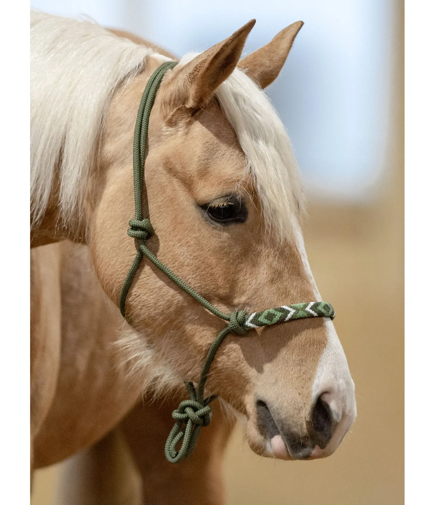 Beau licol à noeuds robuste. Avec doublure à la têtière et muserolle. Orné de perles formant un superbe motif. Épaisseur des cordes 8 mm. 100 % polypropylène.