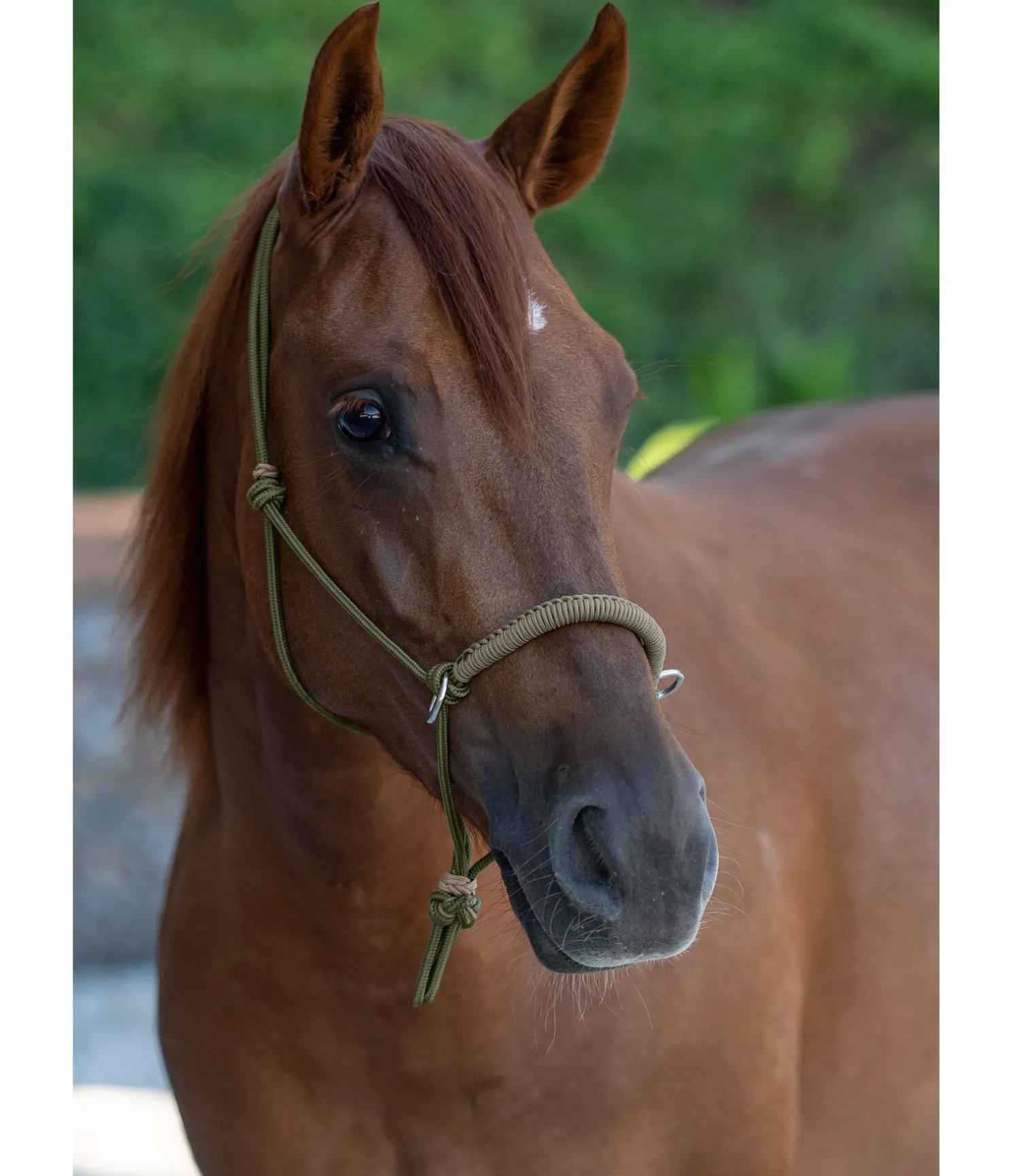 Magnifique licol à noeuds avec muserolle réglable. Idéal pour une communication précise avec le cheval. Muserolle renforcée et anneaux pour rênes. Épaisseur de la corde 6 mm. Avec pompon. 100 % polypropylène.