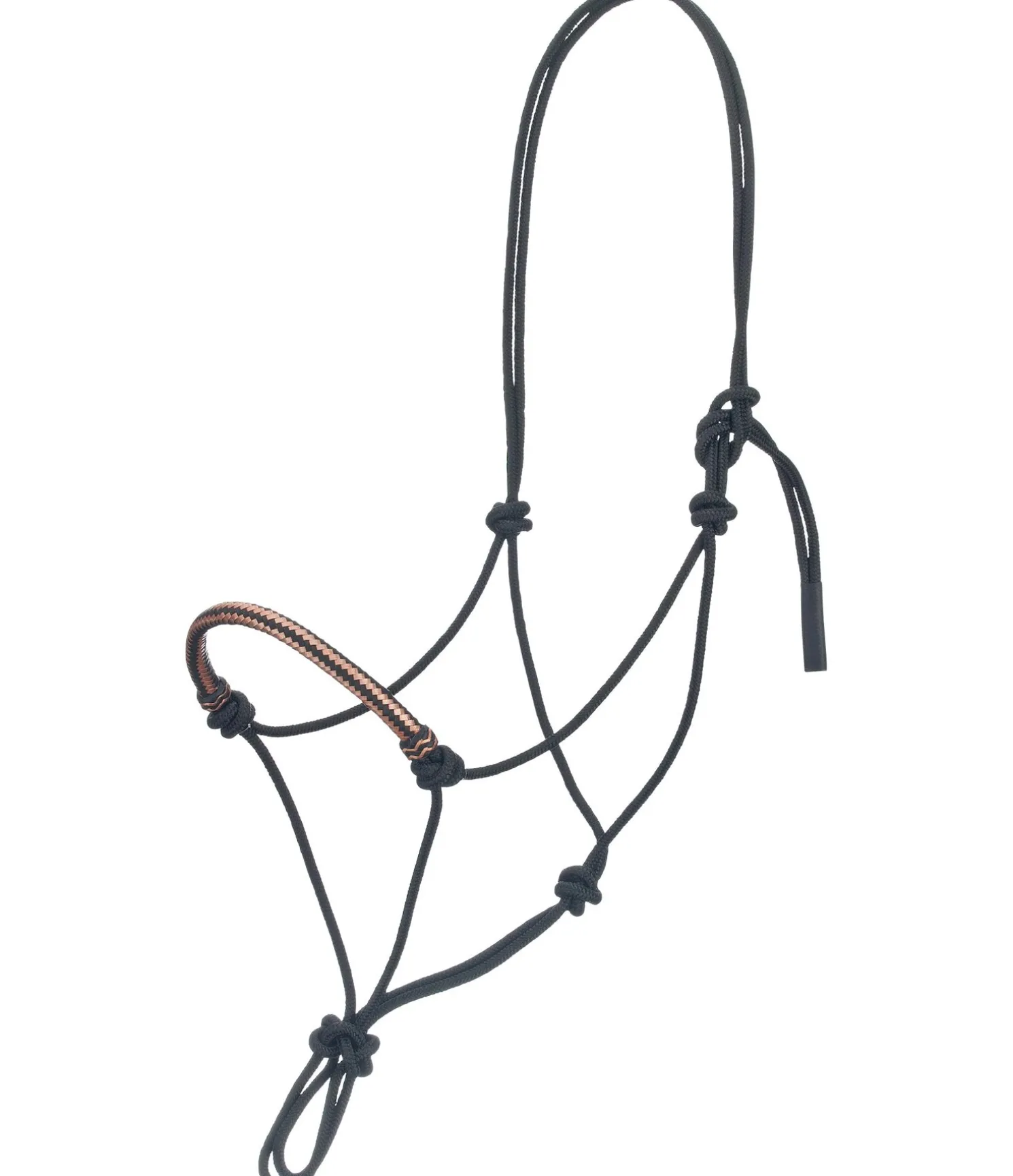 Licol à noeuds haut de gamme. Avec muserolle de couleur contrastante en cuir brut. Diamètre 6 mm.