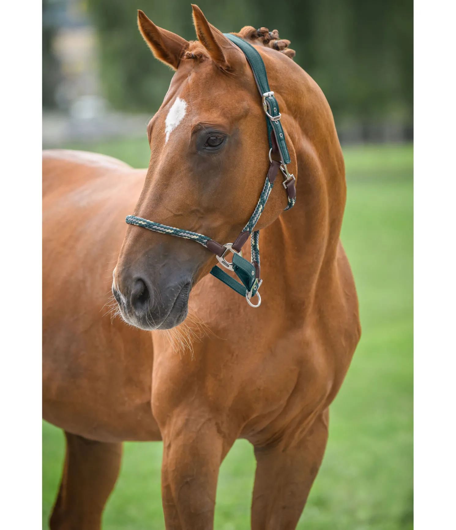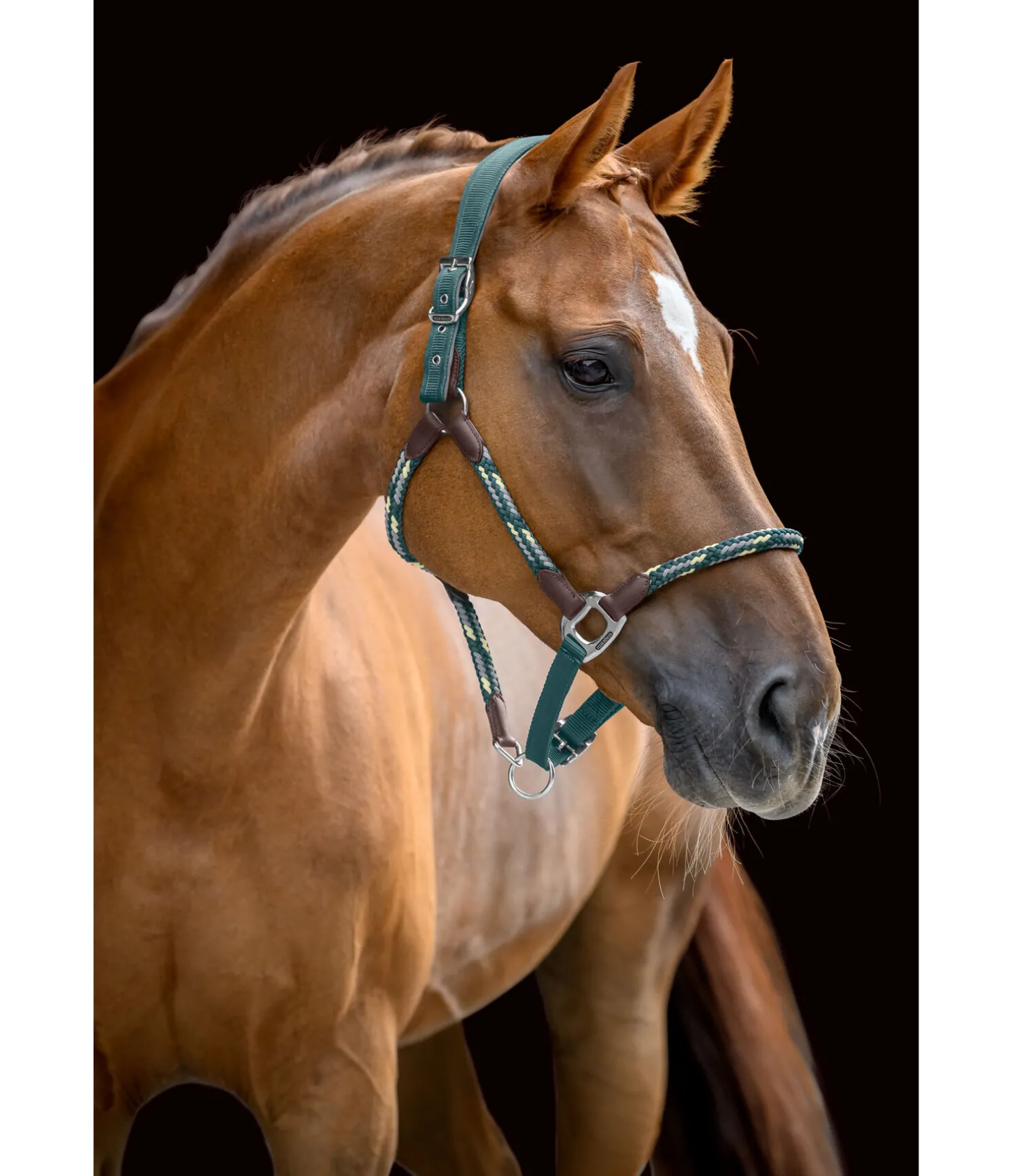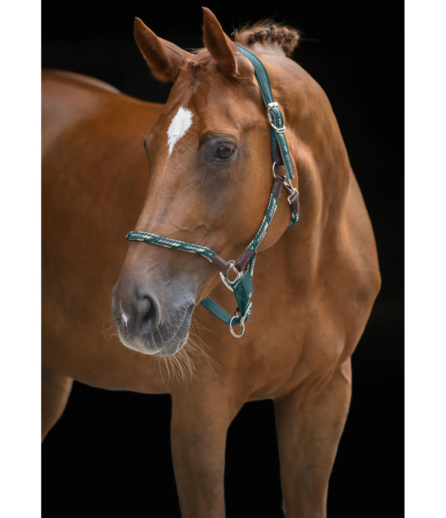 Élégant licol avec large têtière anatomique. Doublure douce en caoutchouc chloroprène. Muserolle, sous-gorge et montants en corde souple tressée pour une action directe mais douce. Têtière doublement réglable, muserolle réglable. Bouclerie résistante de qualité supérieure. 100 % polypropylène.