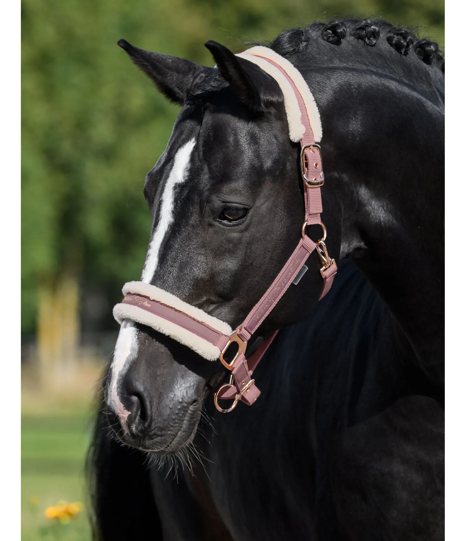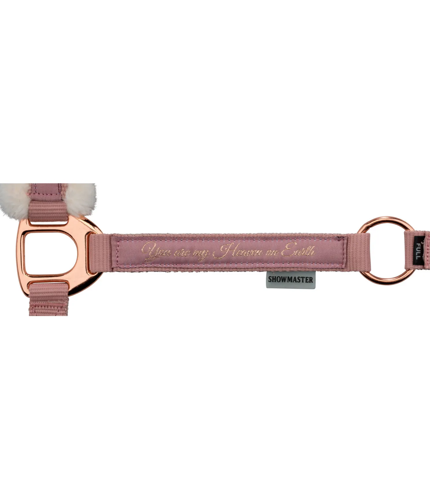 Licol original avec rembourrage en polaire Teddy douce à la têtière et à la muserolle. Broderies en fil scintillant : « Better Together » sur la muserolle et « You are my Heaven on Earth » sur les montants. Têtière doublement réglable et muserolle facile à régler. Avec mousqueton. Broderies et bouclerie argentées pour les couleurs AN et DQ, rose doré pour les couleurs SR, MR et FZ, et dorées en MA. Licol 100 % polypropylène, polaire Teddy 100 % polyester.