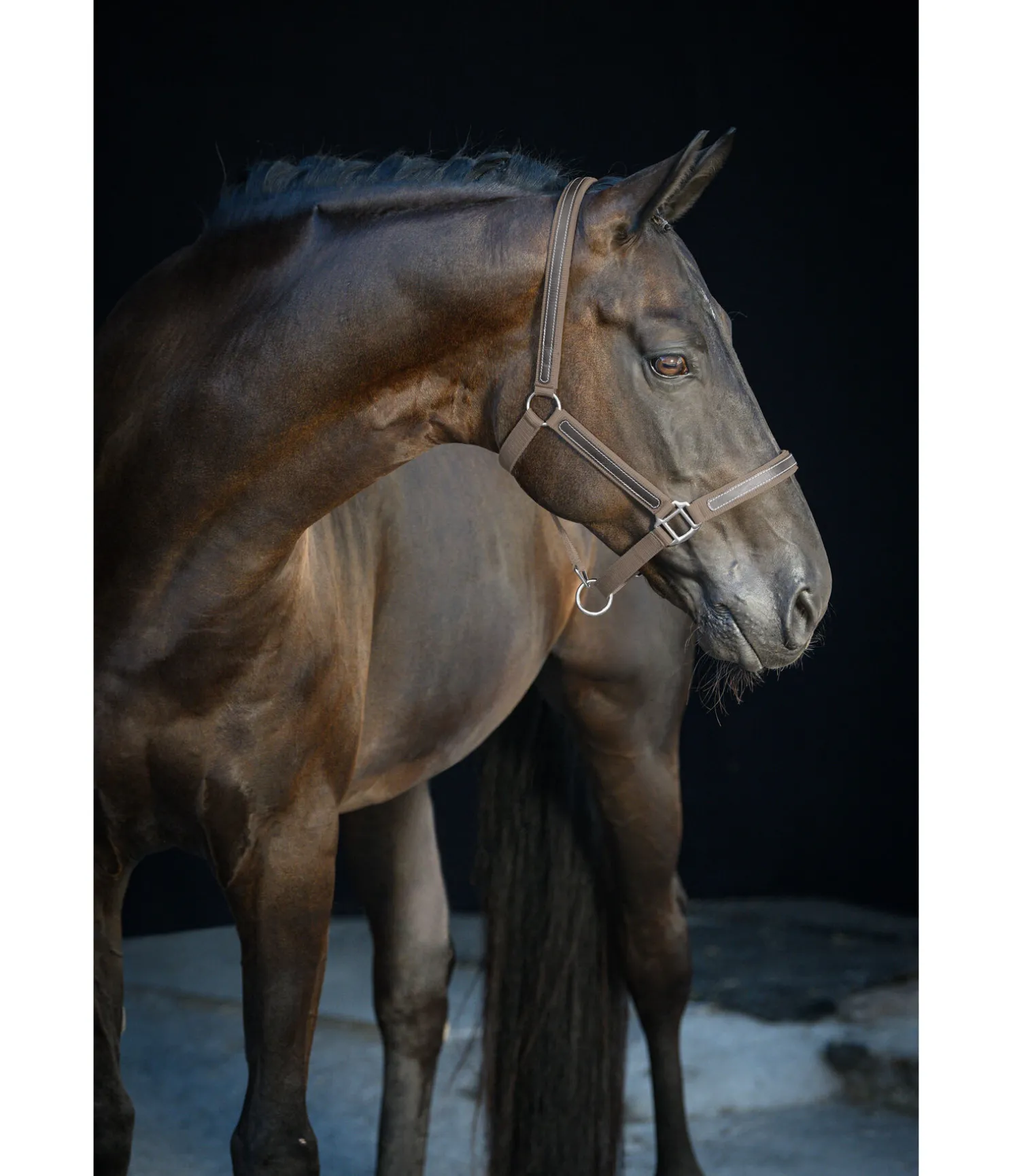 Licol de grande qualité avec finitions en cuir pour un look particulièrement soigné. Têtière et muserolle avec doublure. Têtière et muserolle réglables. Bouclerie argentée. Licol 100 % polypropylène, doublure 100 % caoutchouc-chloroprène.