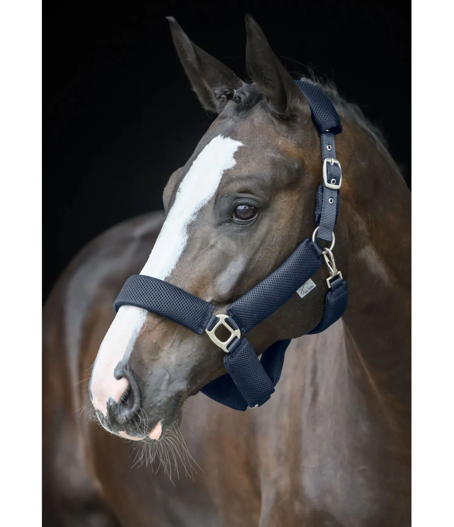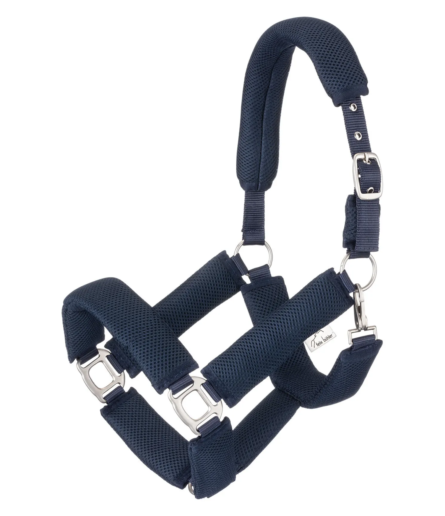 Licol confortable entièrement doublé de mesh. Le rembourrage en tissu Air mesh respirant réduit les points de pression et permet une circulation de l’air permanente. Bouclerie matte argentée. Têtière réglable. Licol 100 % polypropylène.