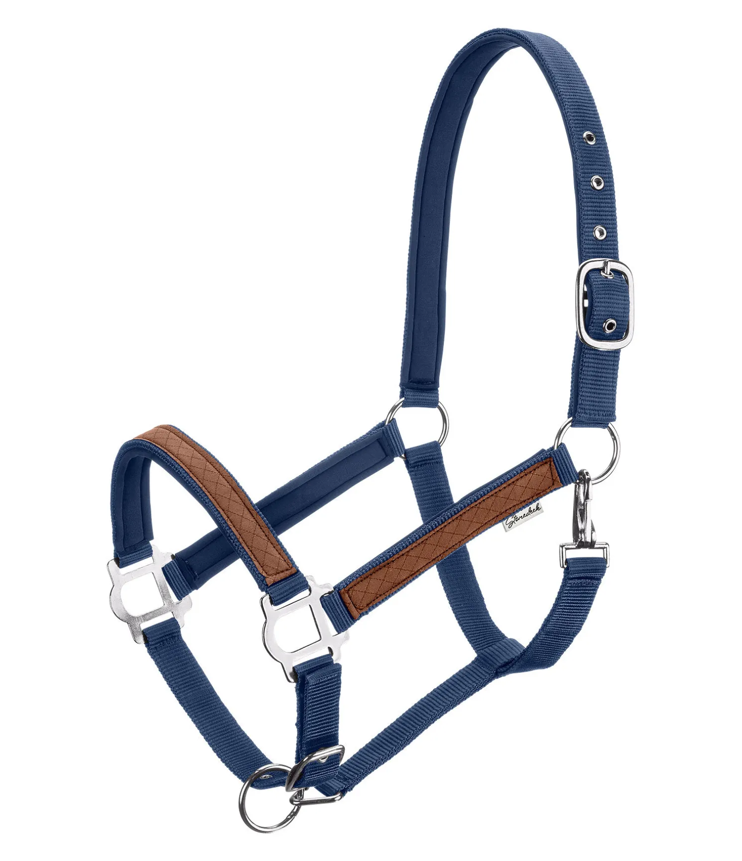 Licol chic dans un look western avec montants et muserolle ornés de suédine. Têtière, montants et muserolle avec doublure moelleuse en caoutchouc chloroprène. Têtière et muserolle réglables. Mousquetons clippers. Boucles argentées. Licol 50 % polypropylène, 50 % polyester, doublure 100 % caoutchouc chloroprène.
