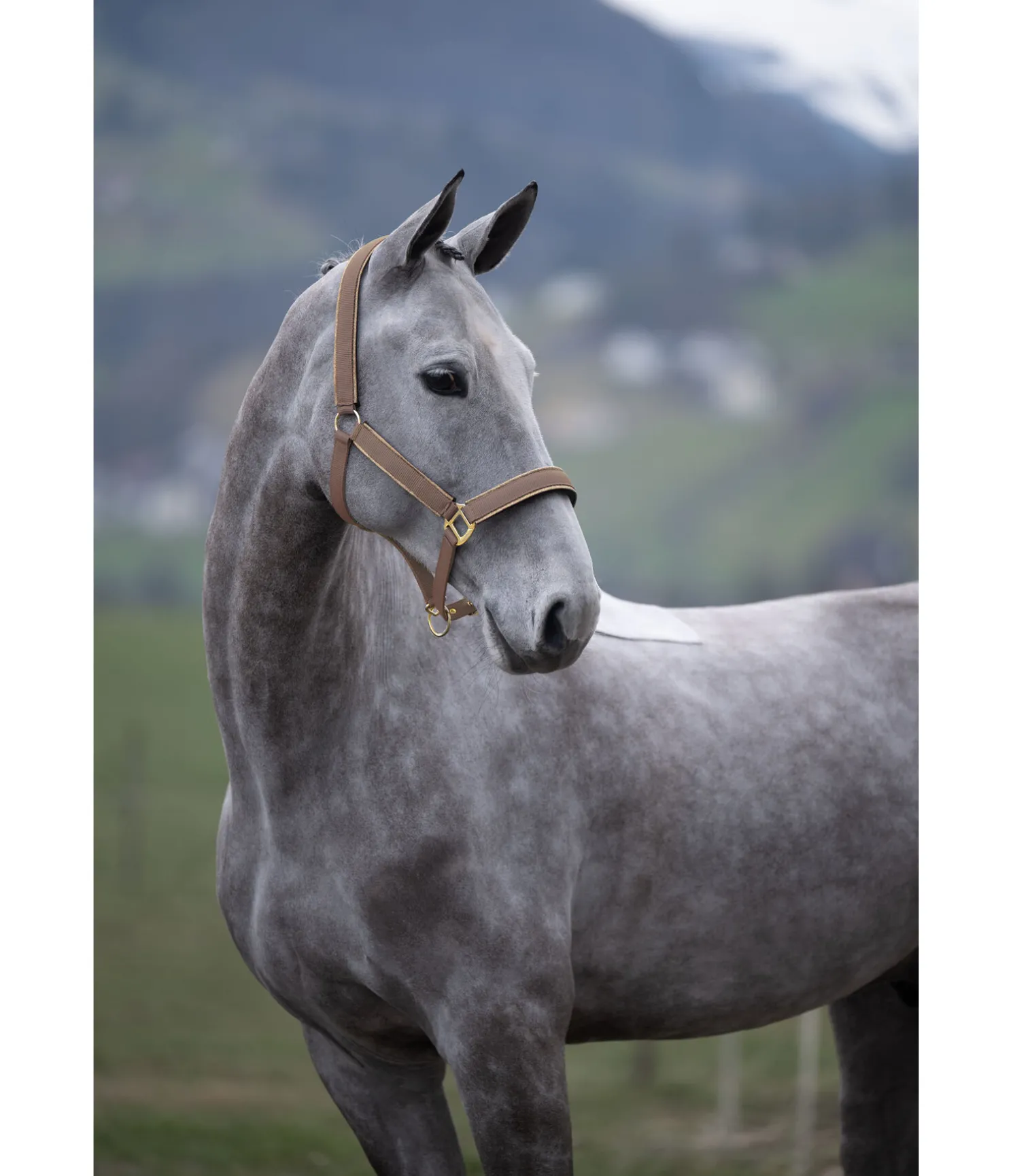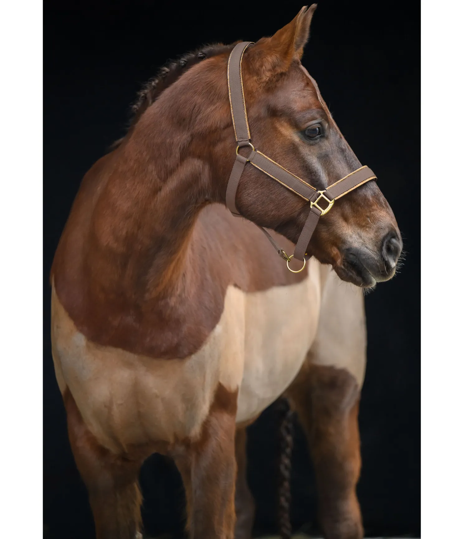 Licol chic avec passepoil scintillant et bouclerie de couleur assortie. Têtière, muserolle et montants avec doublure douce en caoutchouc chloroprène pour un confort maximal. Plaque métallique discrète avec logo gravé sur le montant gauche. Têtière et muserolle réglables. 100 % polypropylène.