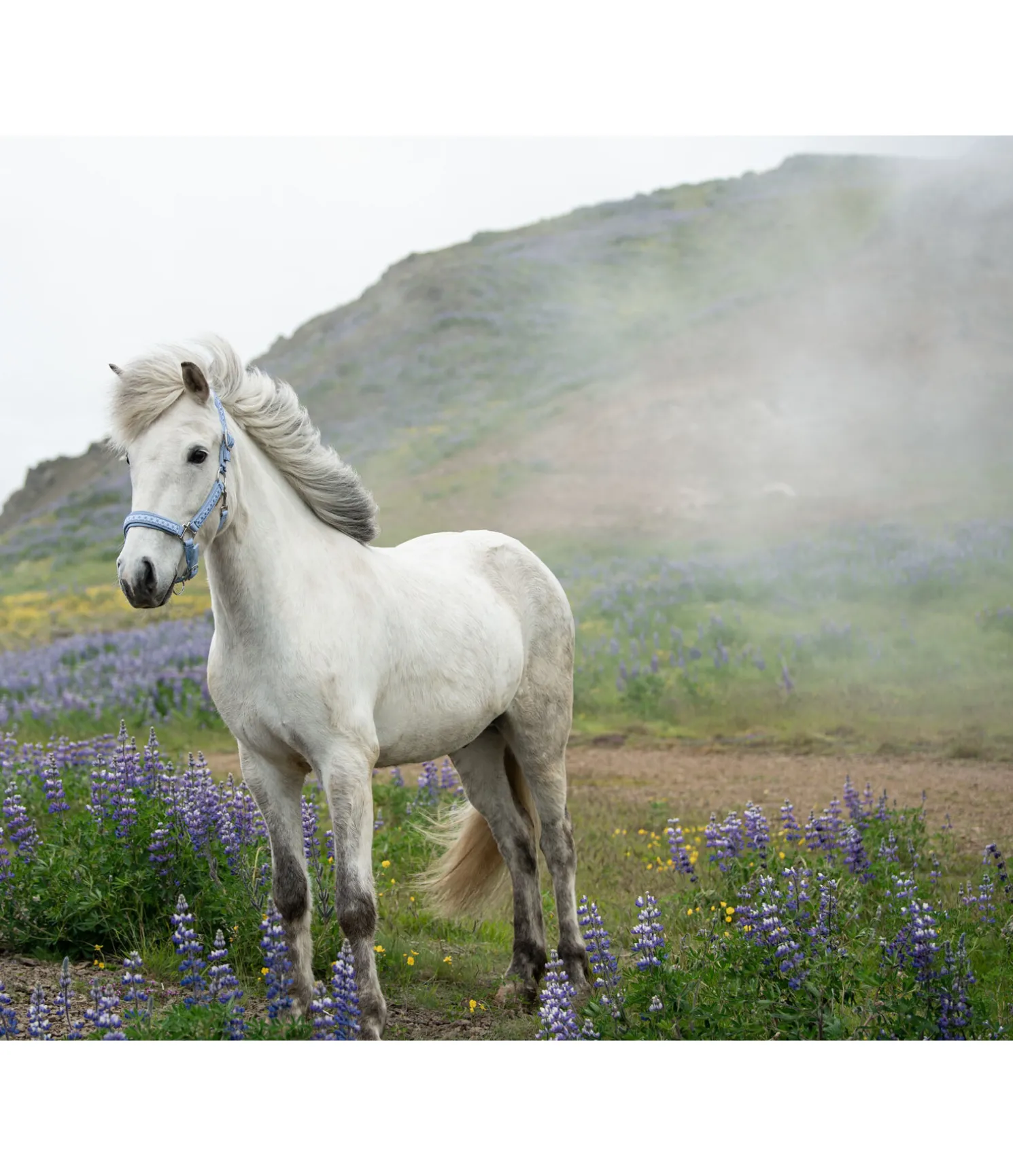 Licol avec motif nordique, pas uniquement réservé aux poneys islandais. Têtière, montants et muserolle avec doublure moelleuse. Têtière et muserolle réglables. Licol 100 % polypropylène, doublure 100 % polyester