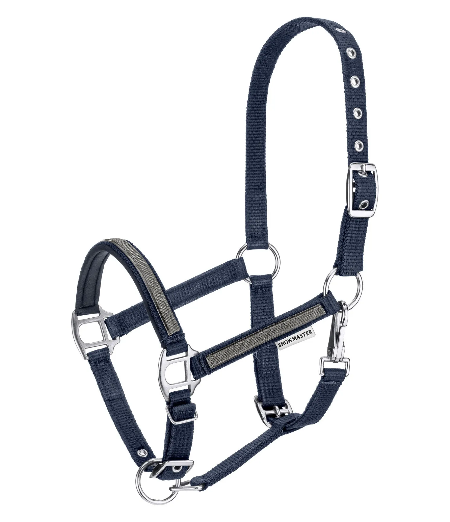 Licol tendance avec bande scintillante cousue. Muserolle avec doublure douce en caoutchouc chloroprène. Nombreux réglages possibles pour la têtière, la sous-gorge et la muserolle. 100 % polypropylène.