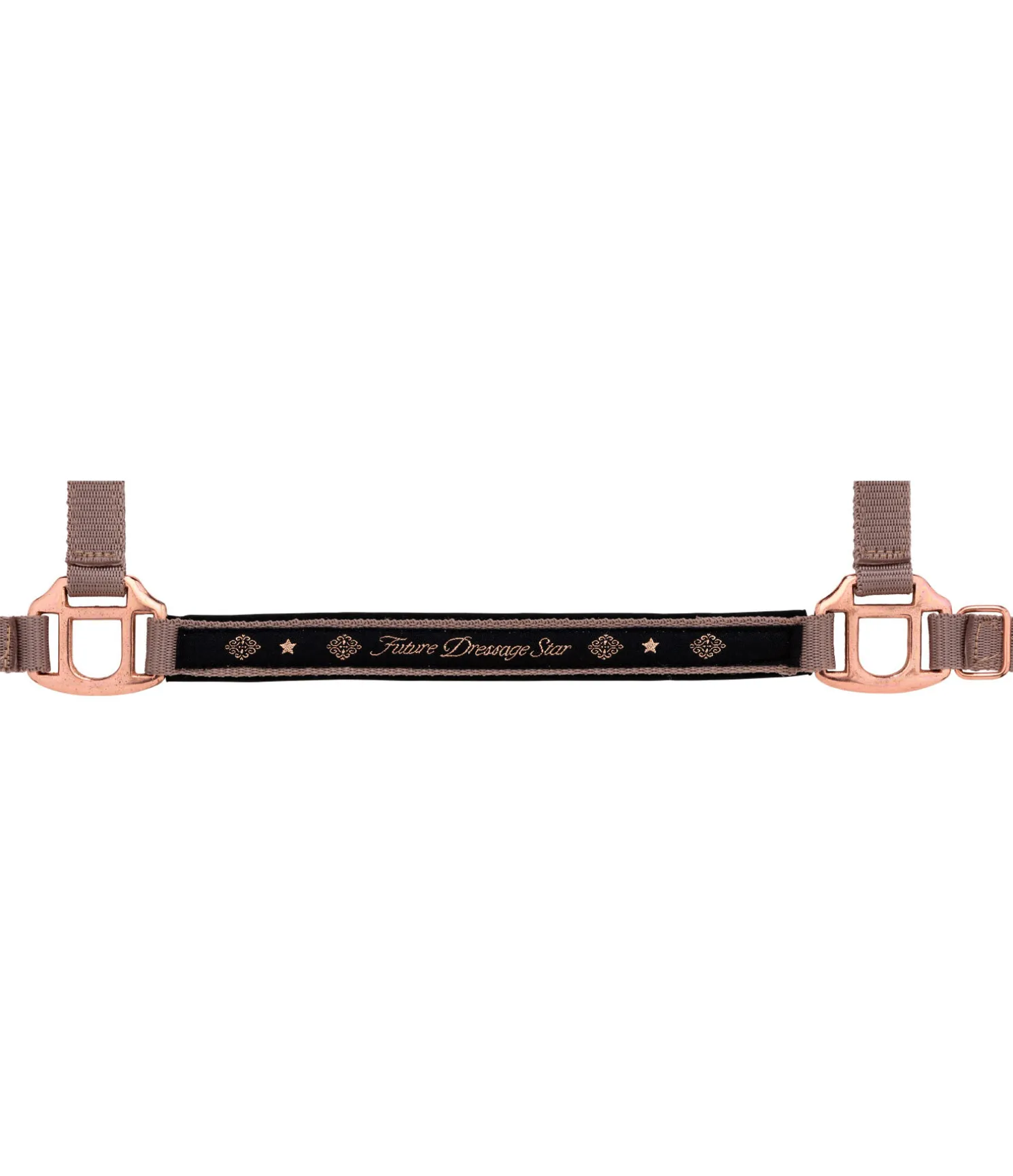 Licol pour les futurs champions de CSO ou de dressage avec broderie scintillante et éléments décoratifs de couleur contrastante sur la muserolle : « Future Jumping Star » en couleur MR et « Future Dressage Star » en couleur WA. Têtière, sous-gorge et muserolle réglables. Avec mousqueton. Broderie et bouclerie rose doré. 100 % polypropylène.