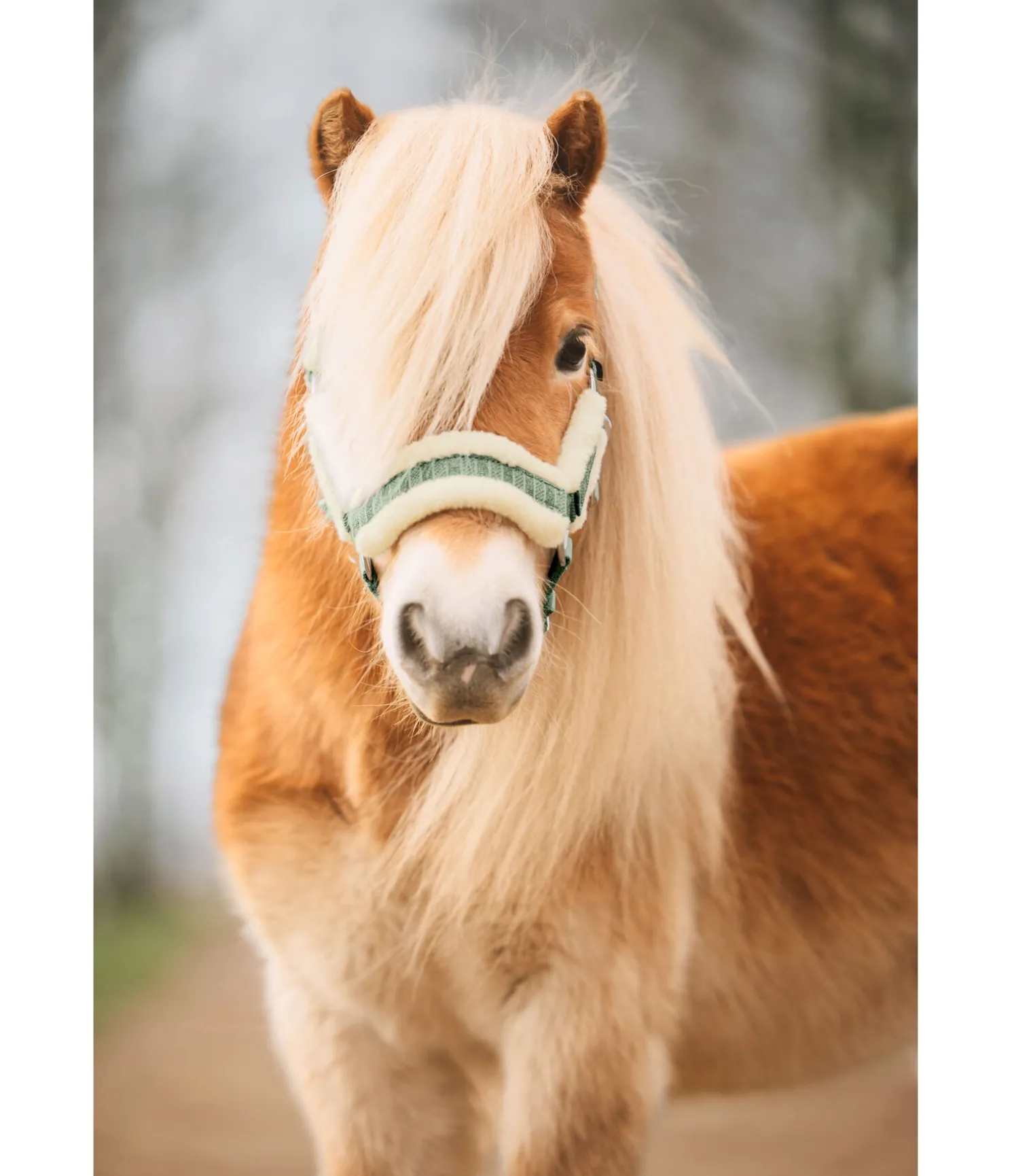 Licol scintillant avec doublure en polaire teddy sur la têtière, la muserolle et les montants. Têtière, sous-gorge et muserolle réglables. Bouclerie argentée. 100 % polypropylène.