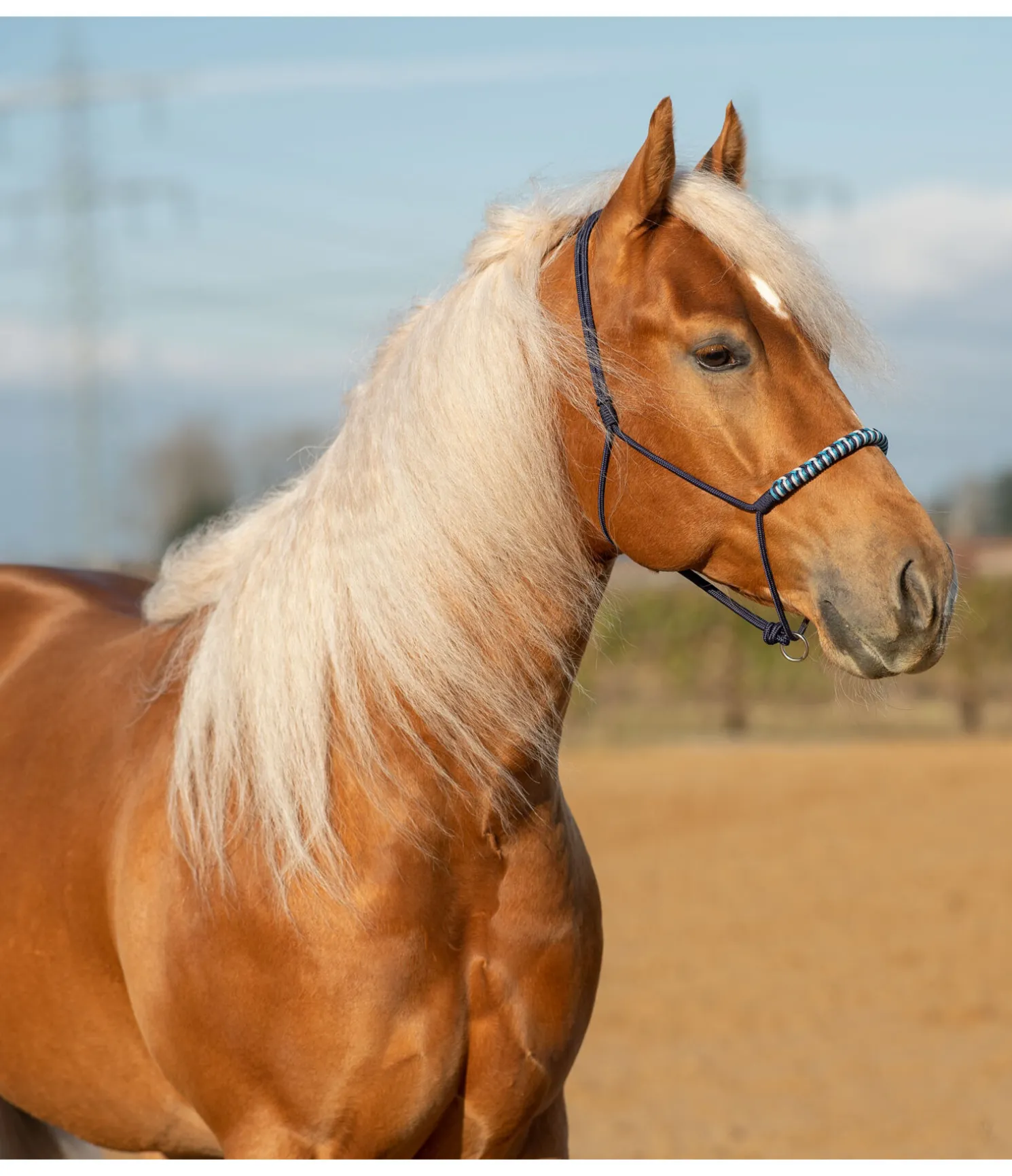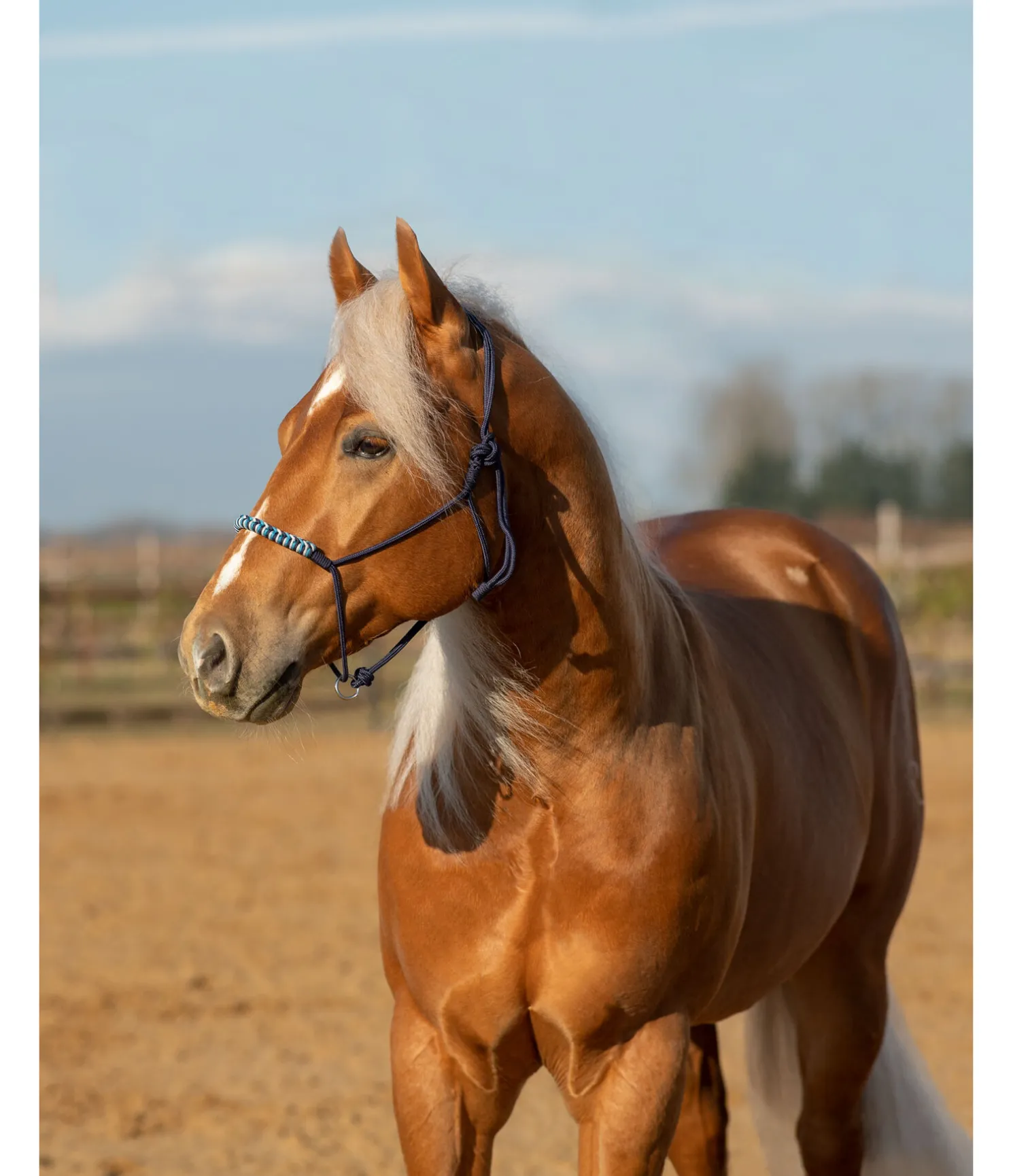 Licol en corde. Anneau coulissant. Sans noeuds. Ne glisse pas en cas de traction latérale, pour une communication précise avec le cheval. Muserolle renforcée. Épaisseur de la corde 6 mm. 100 % polypropylène.