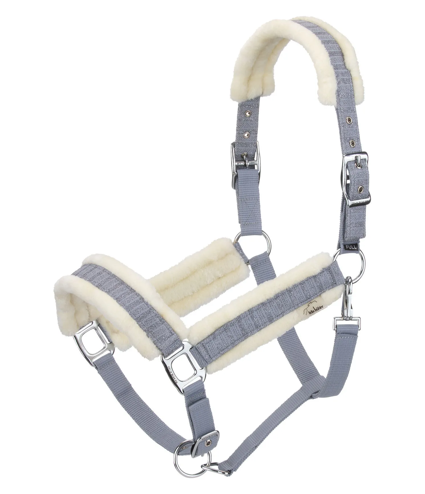 Licol scintillant avec doublure en polaire Teddy sur la têtière, la muserolle et les montants. Têtière réglable des deux côtés et muserolle à réglage facile. Bouclerie argentée. 100 % polypropylène.