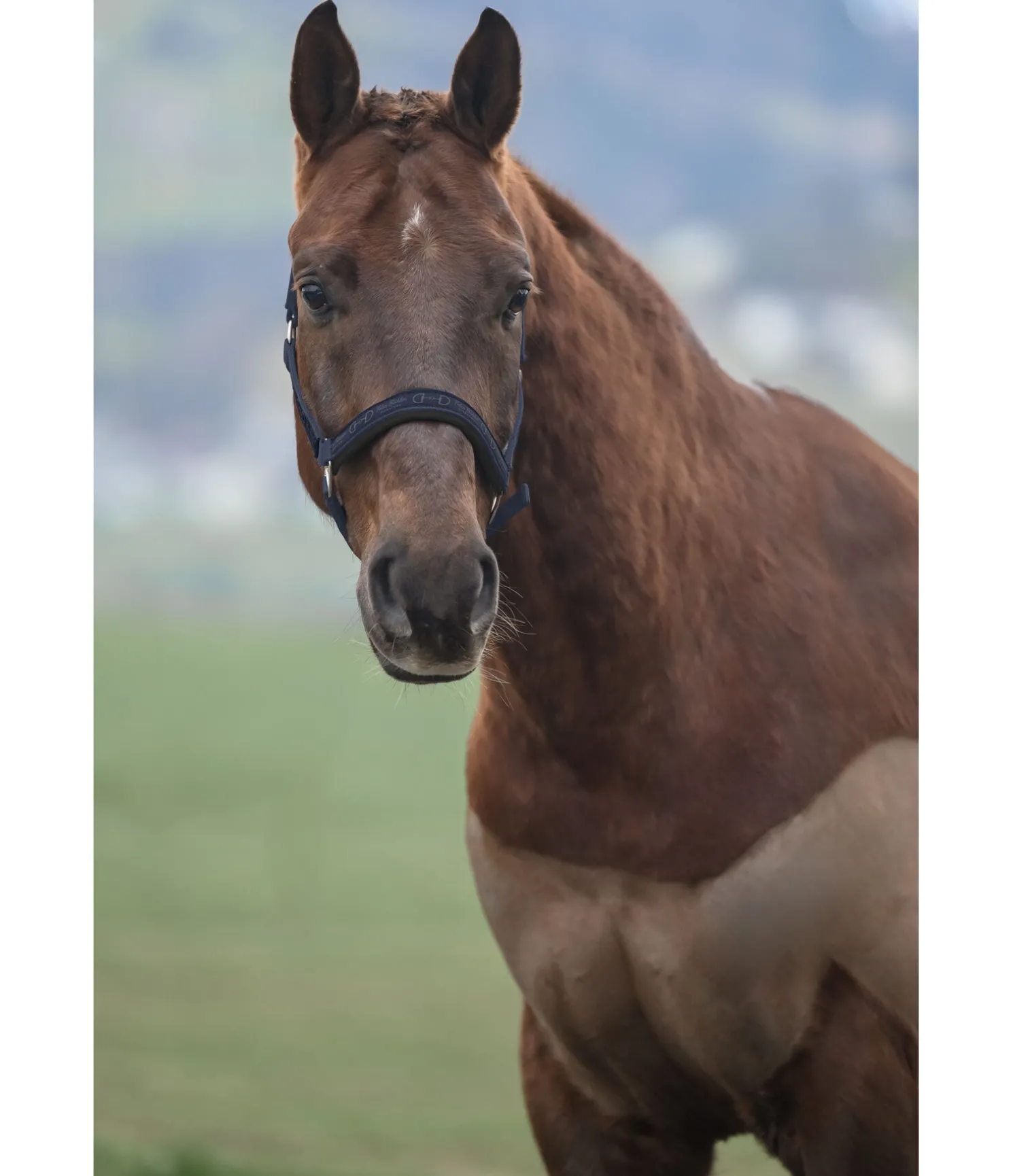 Licol chic avec motif mors de couleur assortie sur la têtière, la muserolle et les montants. Têtière et muserolle avec doublure douce en caoutchouc chloroprène pour un confort optimal. Têtière et muserolle facilement réglables avec bouclerie argentée. Licol 100 % polypropylène, doublure 100 % caoutchouc chloroprène.