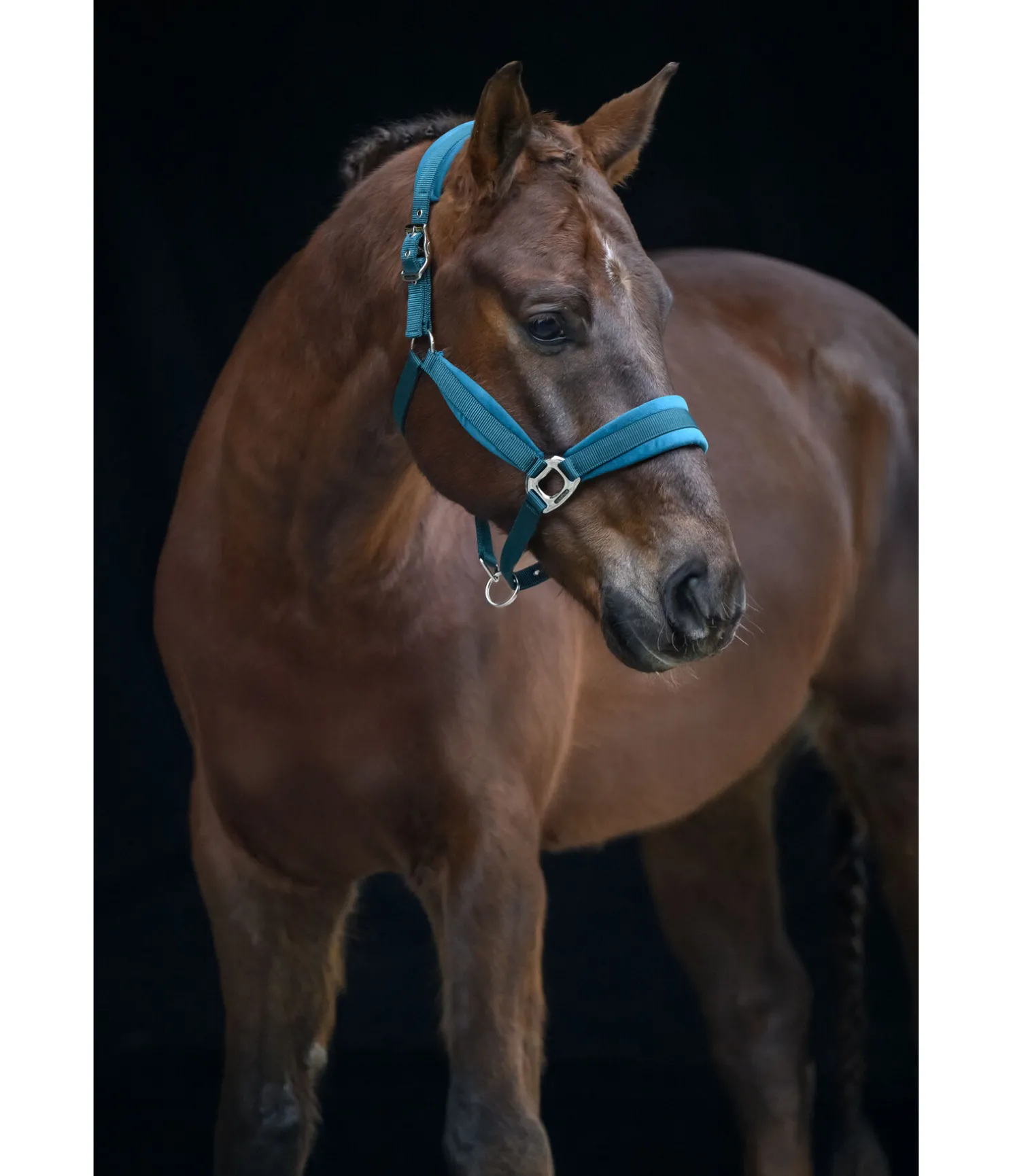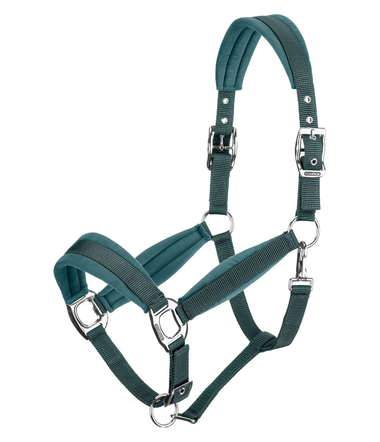 Licol élégant avec doublure effet velours sur la têtière, la muserolle et les montants. Têtière réglable des deux côtés et muserolle à réglage facile. Bouclerie argentée. 100 % polypropylène.