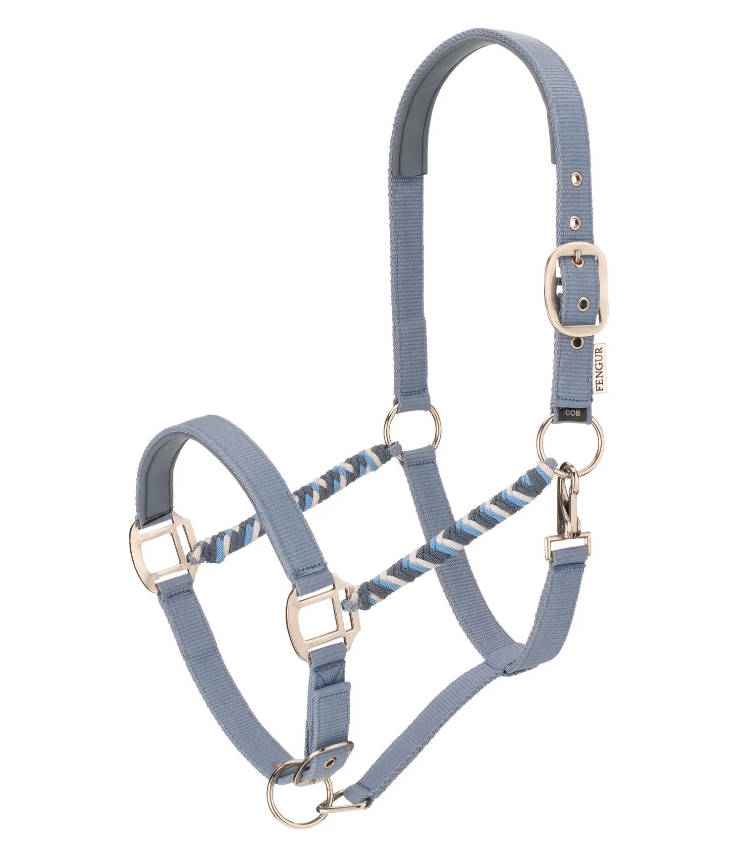 Licol hors du commun avec montants tressés et doublure moelleuse en caoutchouc chloroprène. Têtière et muserolle réglables. Bouclerie argentée.