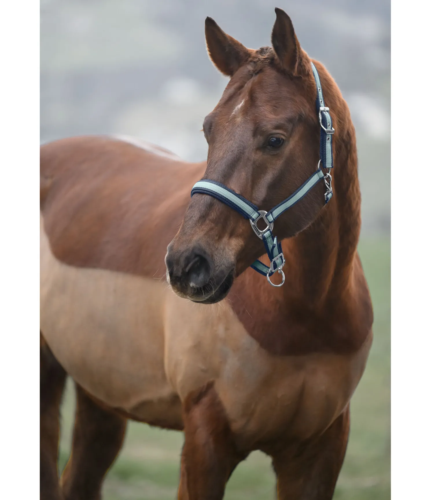Licol rayé dans un look sportif avec doublure respirante en mesh sur la têtière et la muserolle. Muserolle et têtière réglables. Licol 100 % polypropylène.