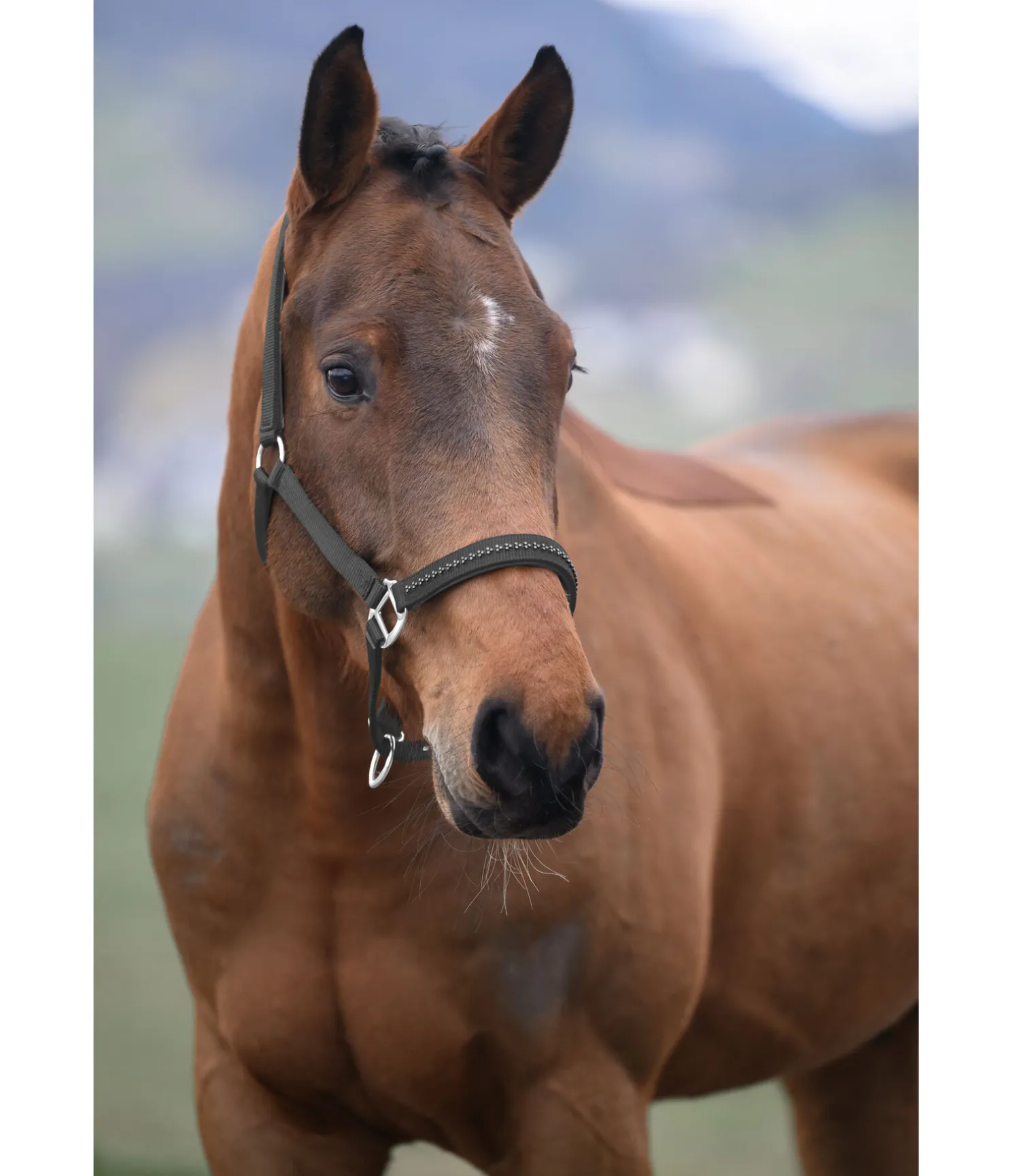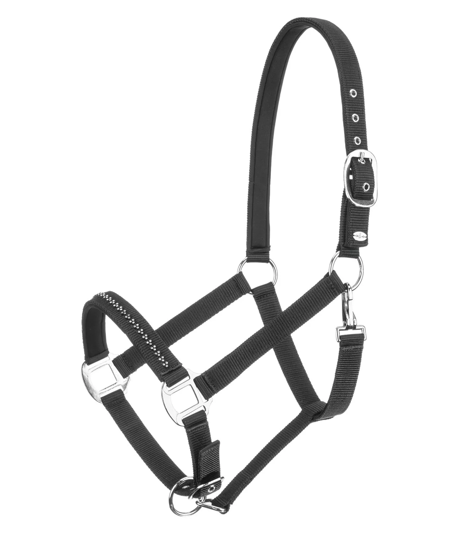 Licol d’écurie de qualité supérieure avec petits strass sur la muserolle. Têtière et muserolle avec doublure douce en caoutchouc chloroprène pour un confort optimal. Têtière et muserolle réglables avec bouclerie de couleur assortie. Licol 100 % polypropylène, doublure 100 % caoutchouc chloroprène.