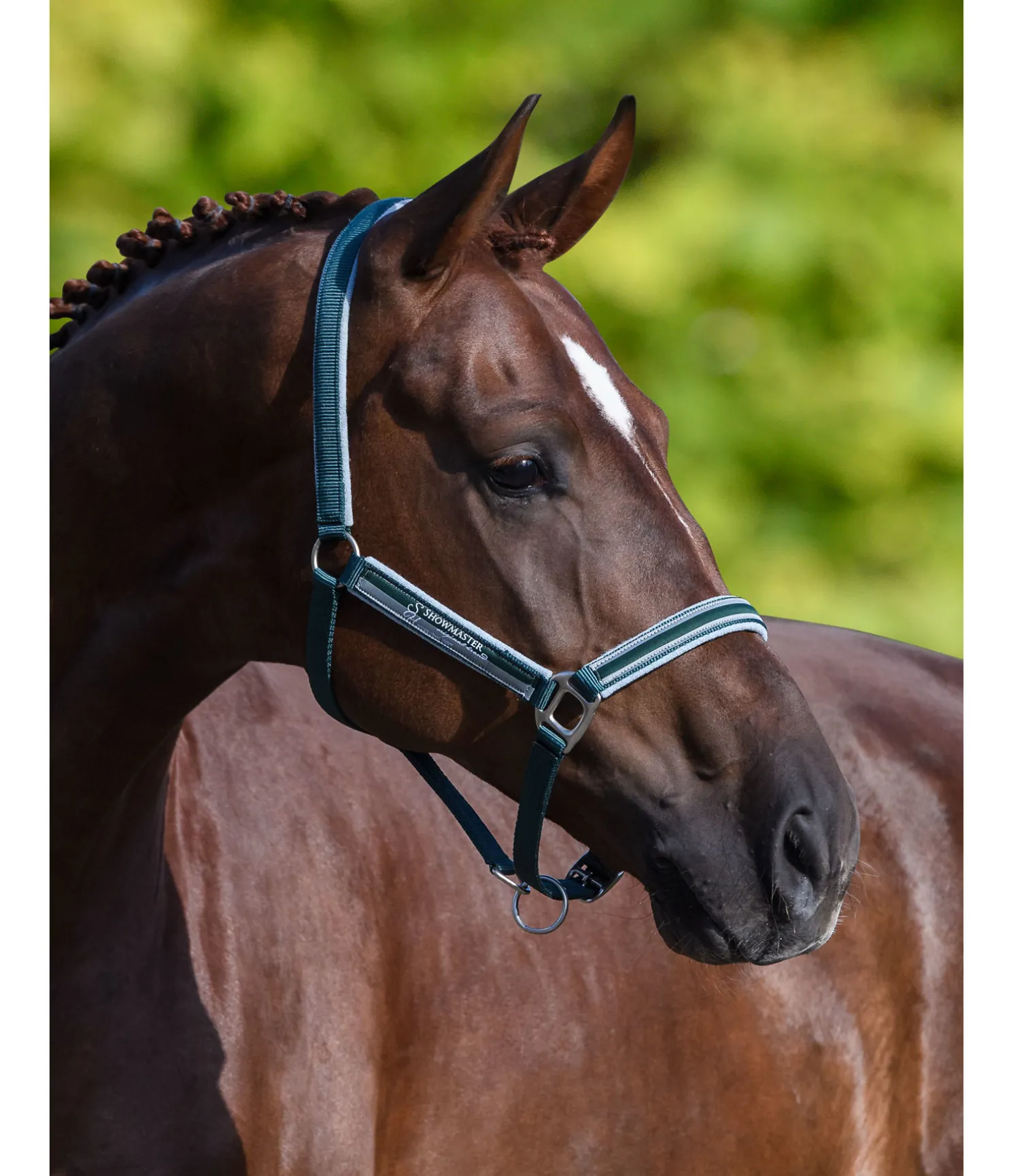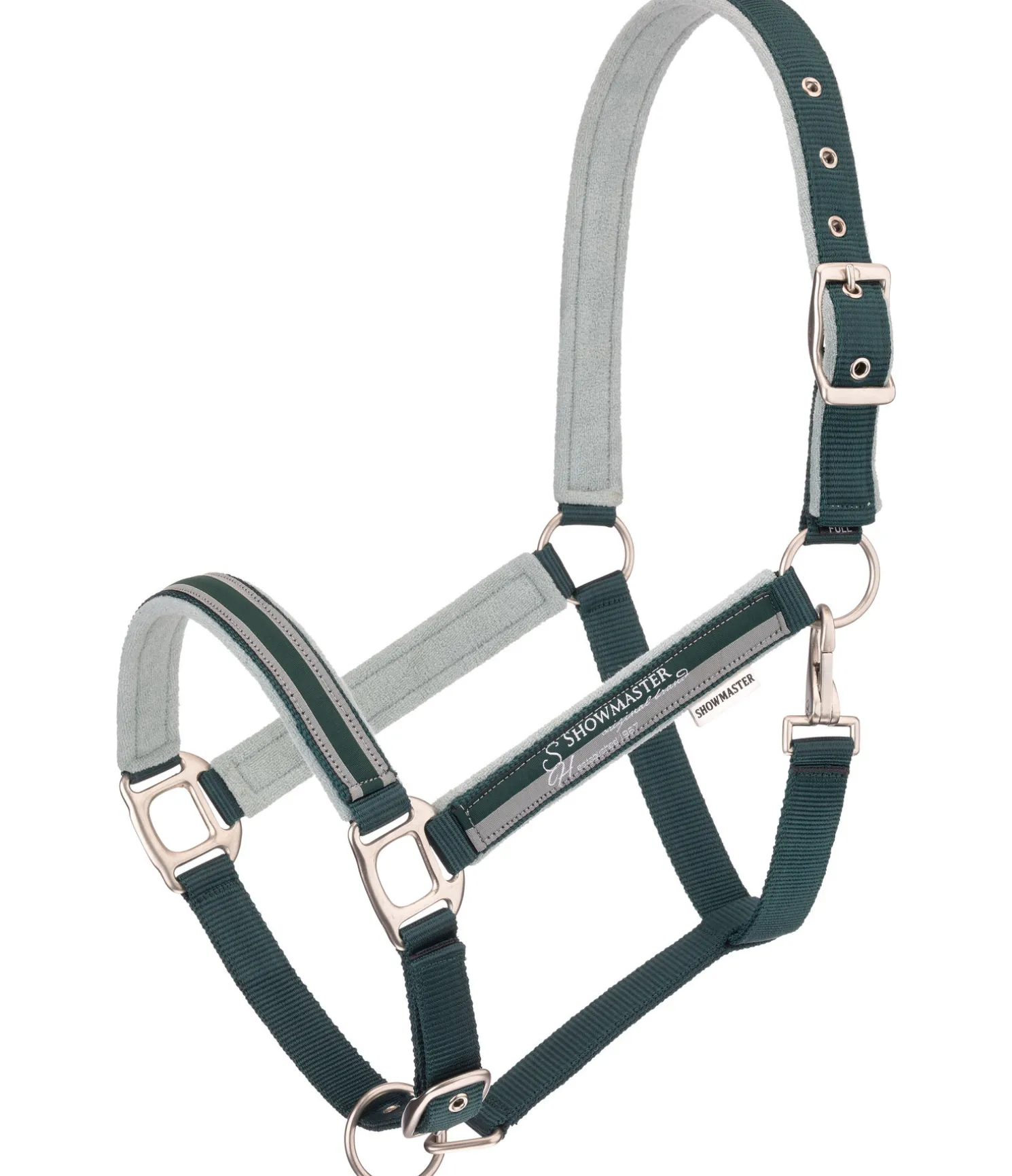 Licol simple bicolore. Têtière, montants et muserolle avec doublure douce en tissu éponge. Têtière et muserolle réglables. Bouclerie mate argentée. Licol 100 % polypropylène, doublure 100 % polyester.