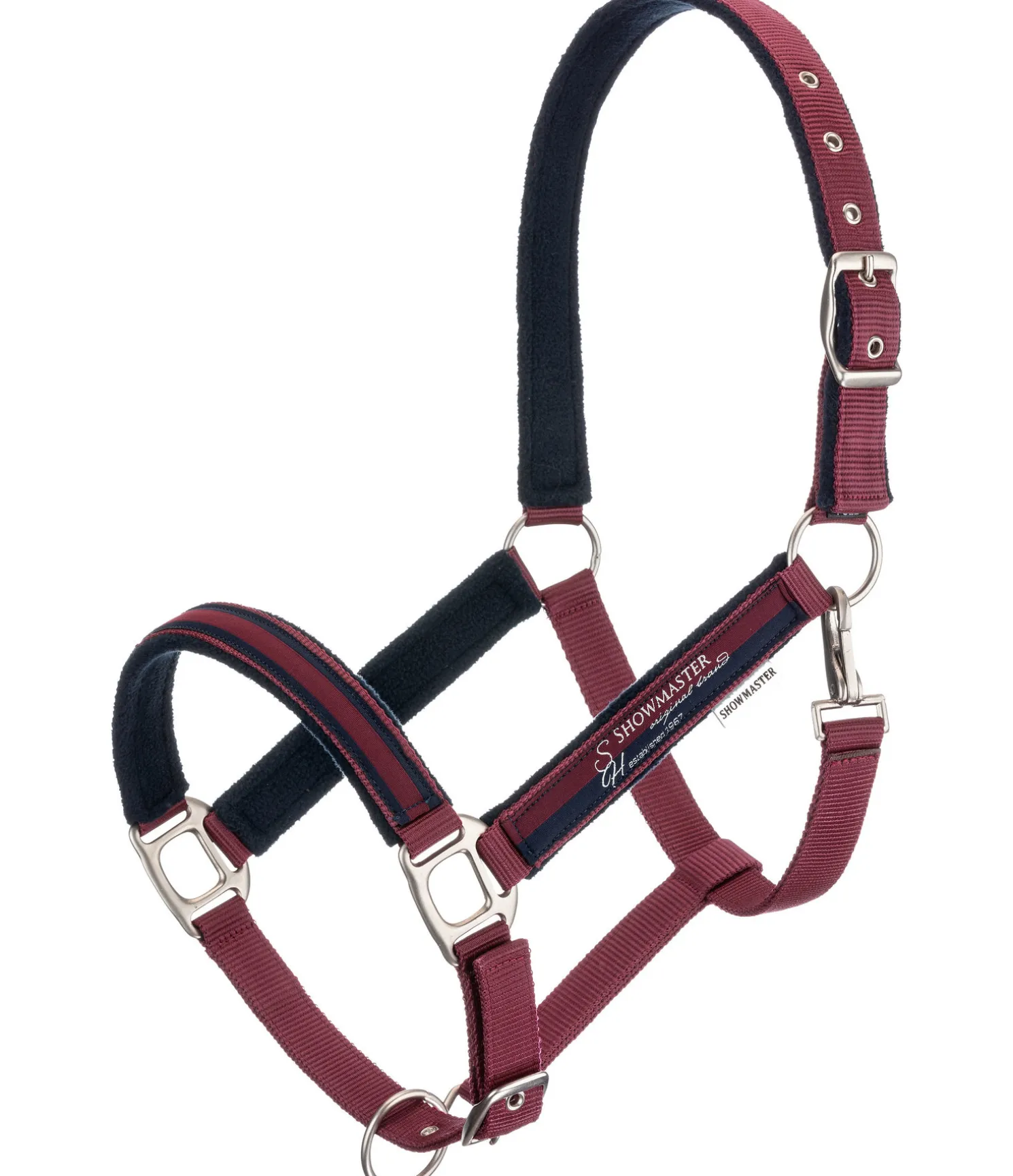 Licol simple bicolore. Têtière, montants et muserolle avec doublure douce en tissu éponge. Têtière et muserolle réglables. Bouclerie mate argentée. Licol 100 % polypropylène, doublure 100 % polyester.