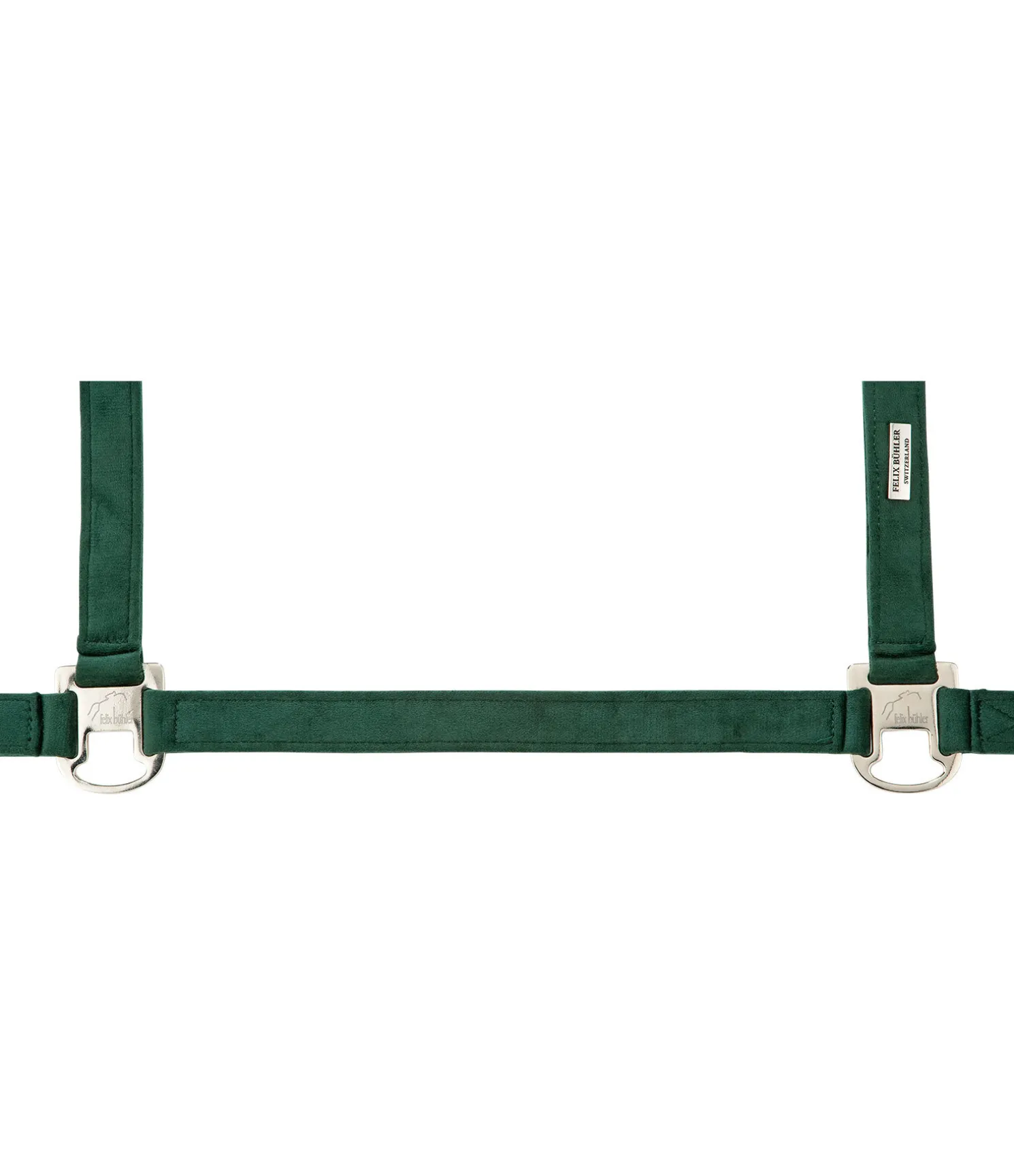 Élégant licol entièrement doublé en matière satinée. Avec plaque logo métallique brillante. Têtière et muserolle réglables. 100 % polypropylène.