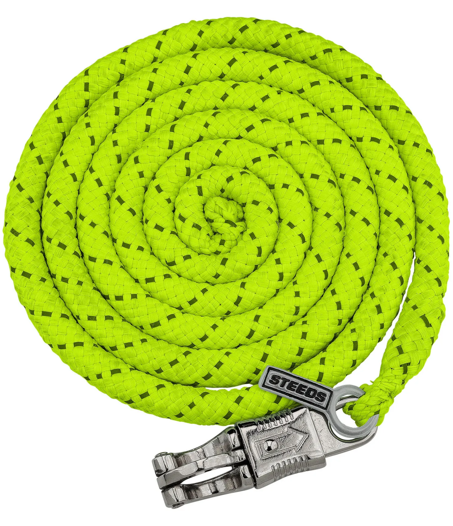Longe avec fil réfléchissant pour plus de sécurité dans l’obscurité. Mousqueton anti-panique argenté. Assortie au licol réfléchissant STEEDS Shiny 340 192. 2 m. 100 % polyester.