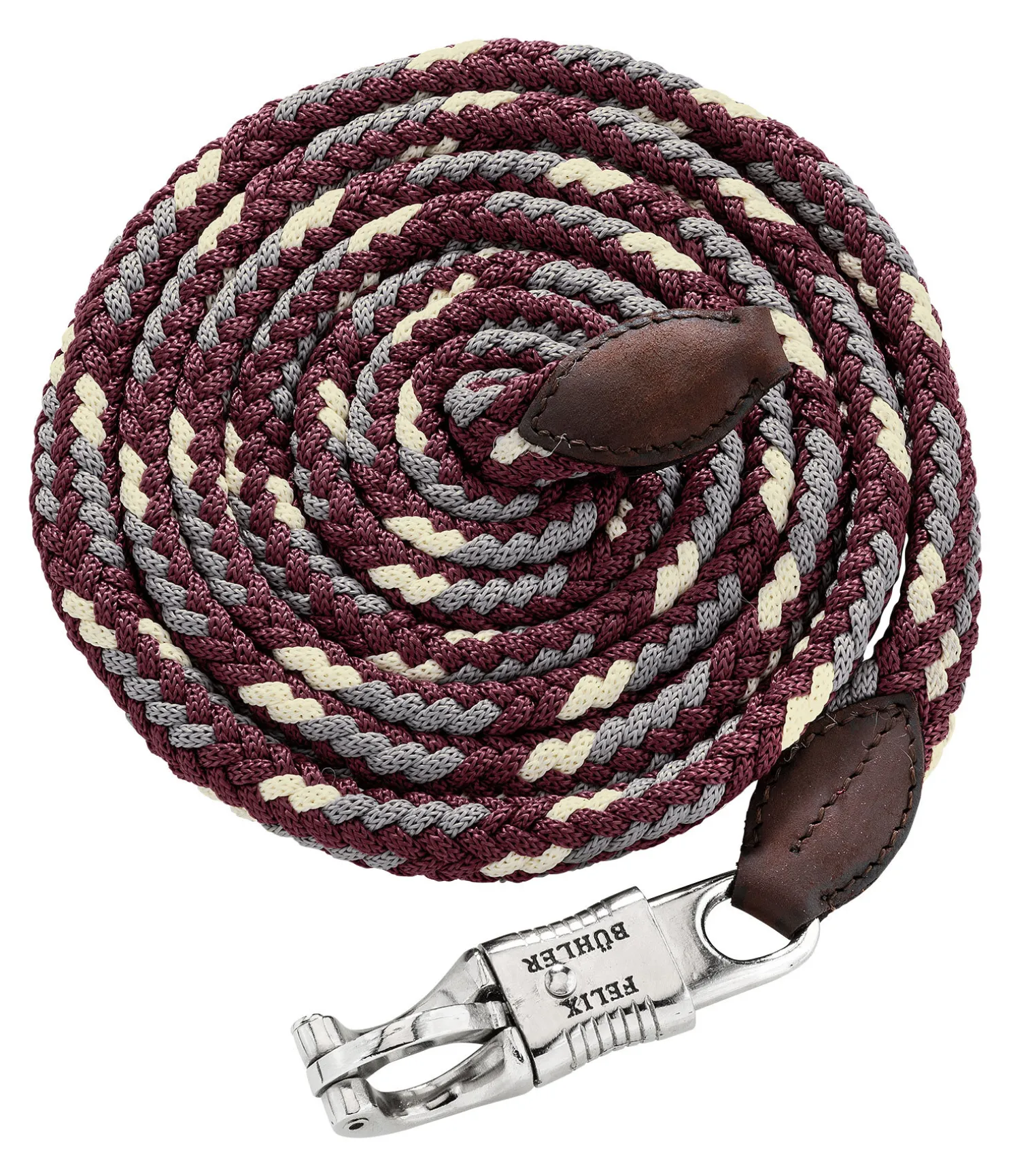 Longe tressée très résistante avec élégants embouts en cuir et mousqueton anti-panique. Assortie au licol 310040. Bouclerie argentée. 2 m. 100 % polypropylène.