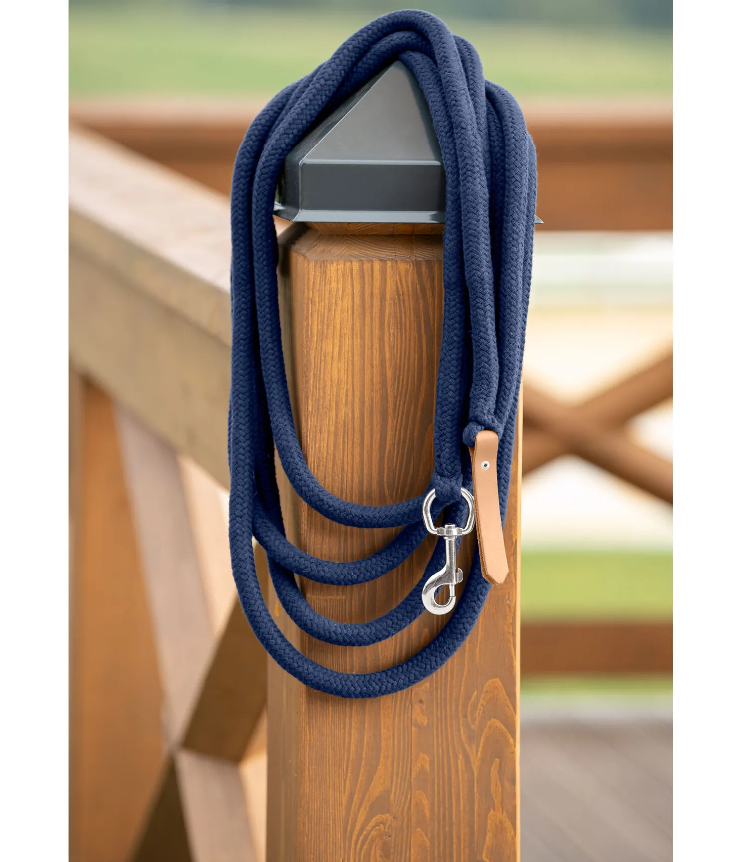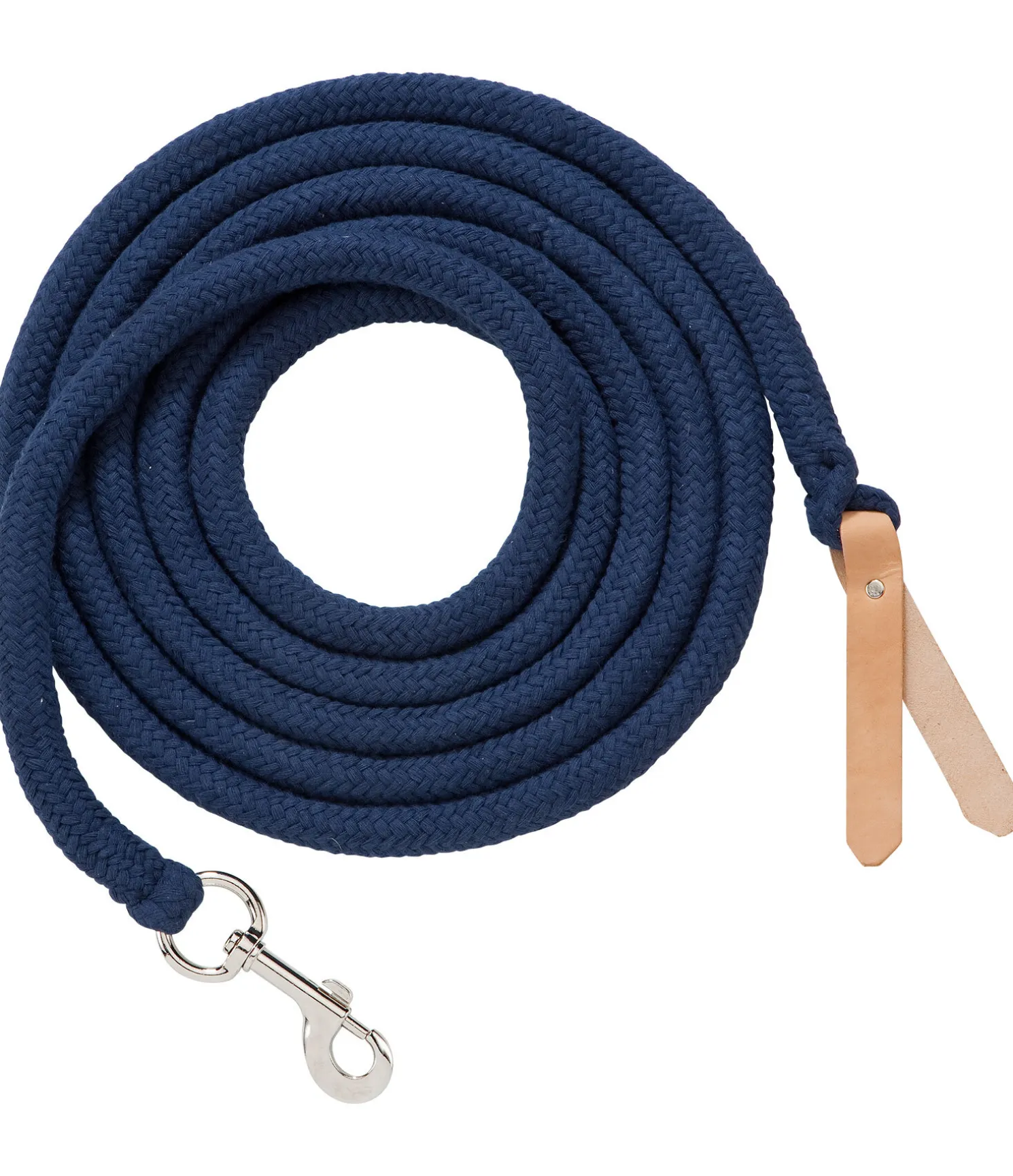 Très résistante grâce au lourd coeur en polyester. Gaine en coton naturel anti-dérapant. Avec Boltsnap et embout en cuir au bout de la longe. Disponible en 4 et 7 mètres.
