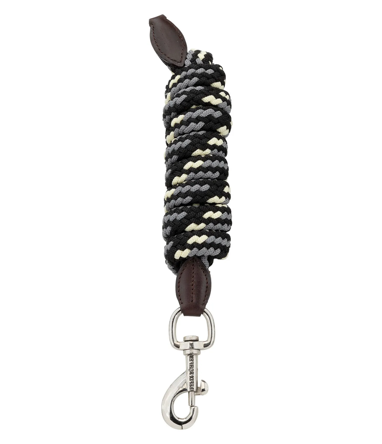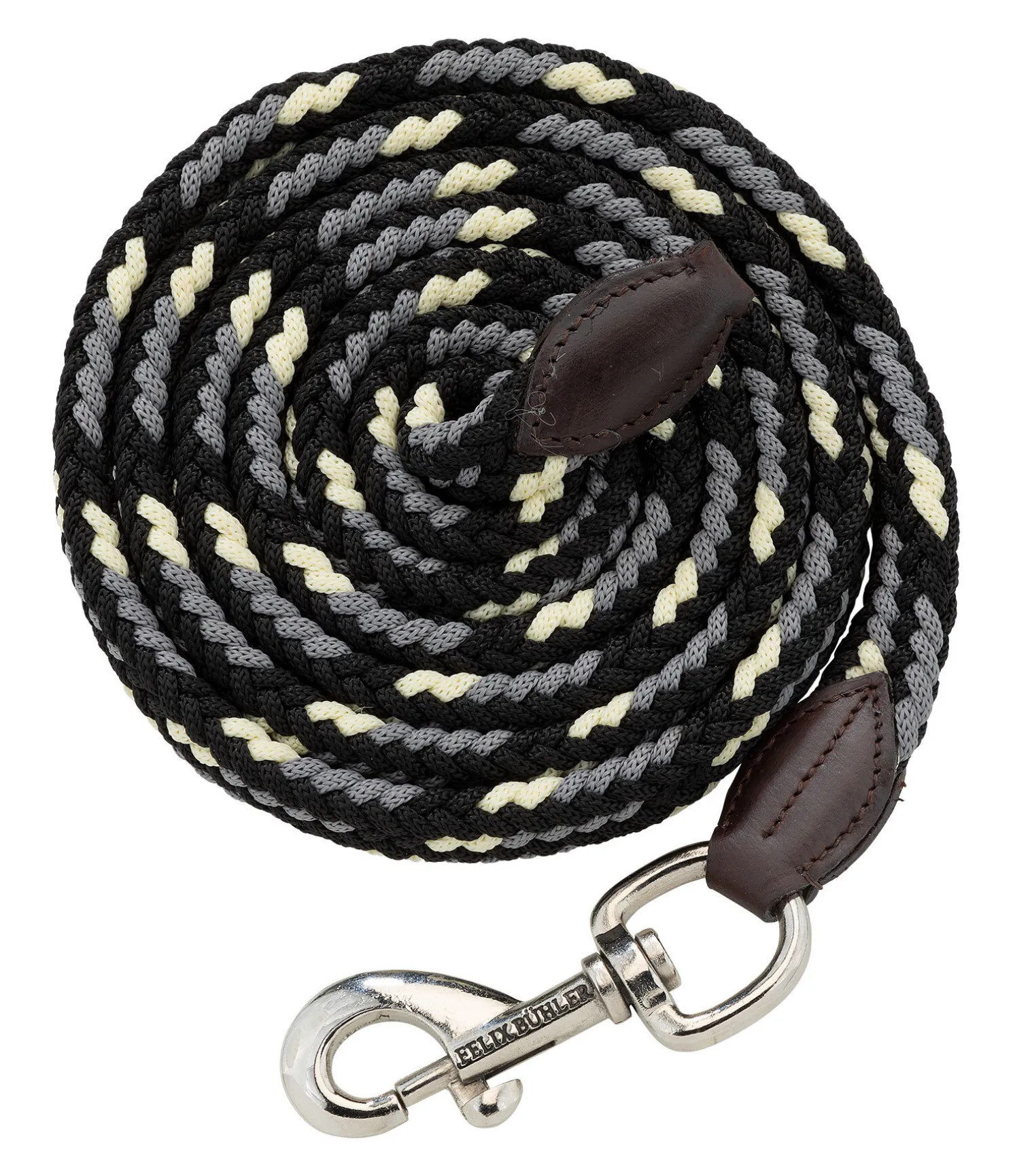 Longe tressée ronde très résistante avec élégants embouts en cuir et mousqueton. Assortie au licol 310040. Bouclerie argentée. 2 m. 100 % polypropylène.