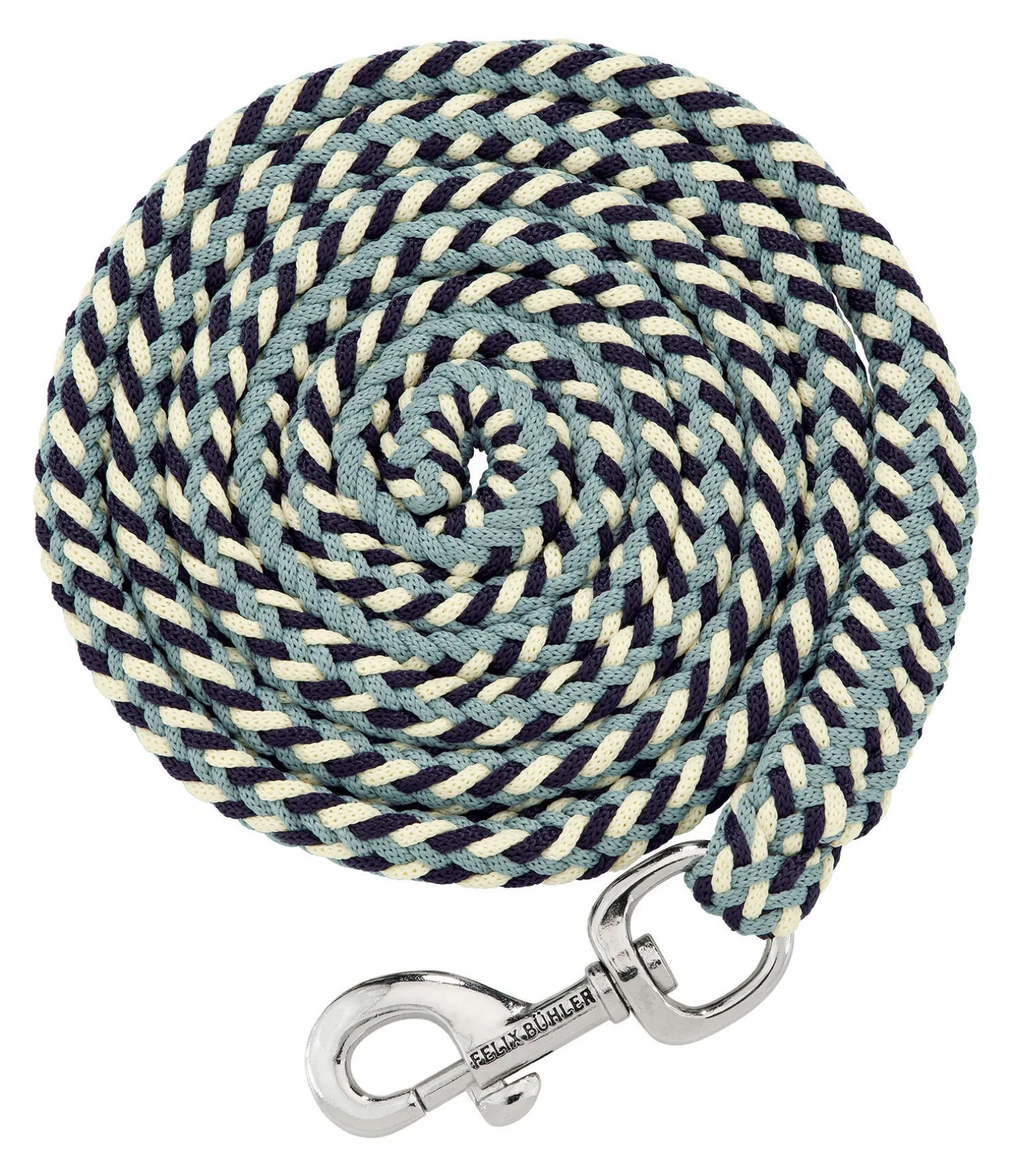 Longe tressée tricolore solide avec mousqueton. 2 m. 100 % polyester. Assortie au licol 310056.