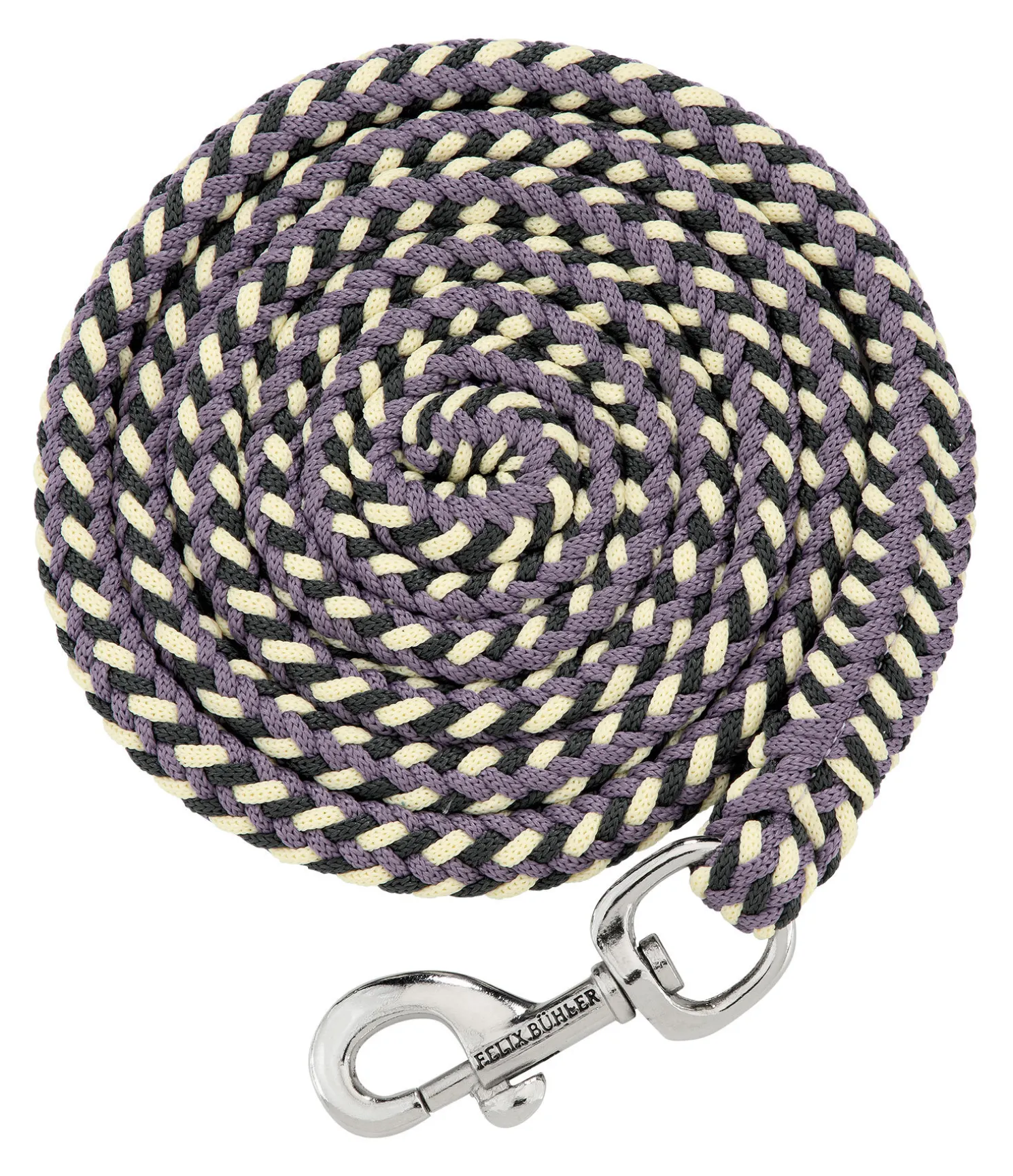 Longe tressée tricolore solide avec mousqueton. 2 m. 100 % polyester. Assortie au licol 310056.