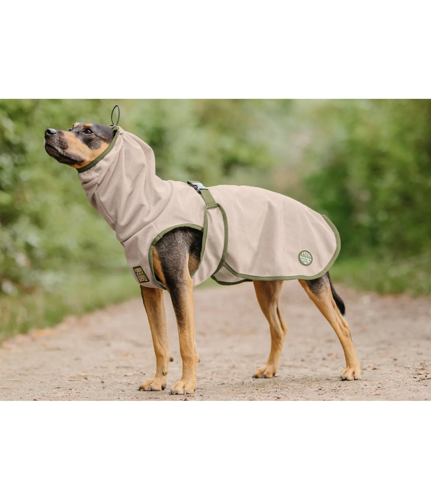 Manteau pour chien extrêmement léger et respirant. Tissu mesh en maille serrée pour protéger efficacement les chiens au pelage court ou à la peau fragile contre les insectes et les rayons du soleil (70 % des rayons UVA et UVB et protection UV d’au moins 5). Le col extra long peut être ajusté par cordon de serrage. Le manteau est doté d’un rabat ventral avec fermeture à clip réglable et de lanières élastiques pour les pattes arrière permettant un maintien optimal. Petit passage zippé bidirectionnel sur le haut du cou et sur le dos pour le collier et le harnais. 100 % polyester.