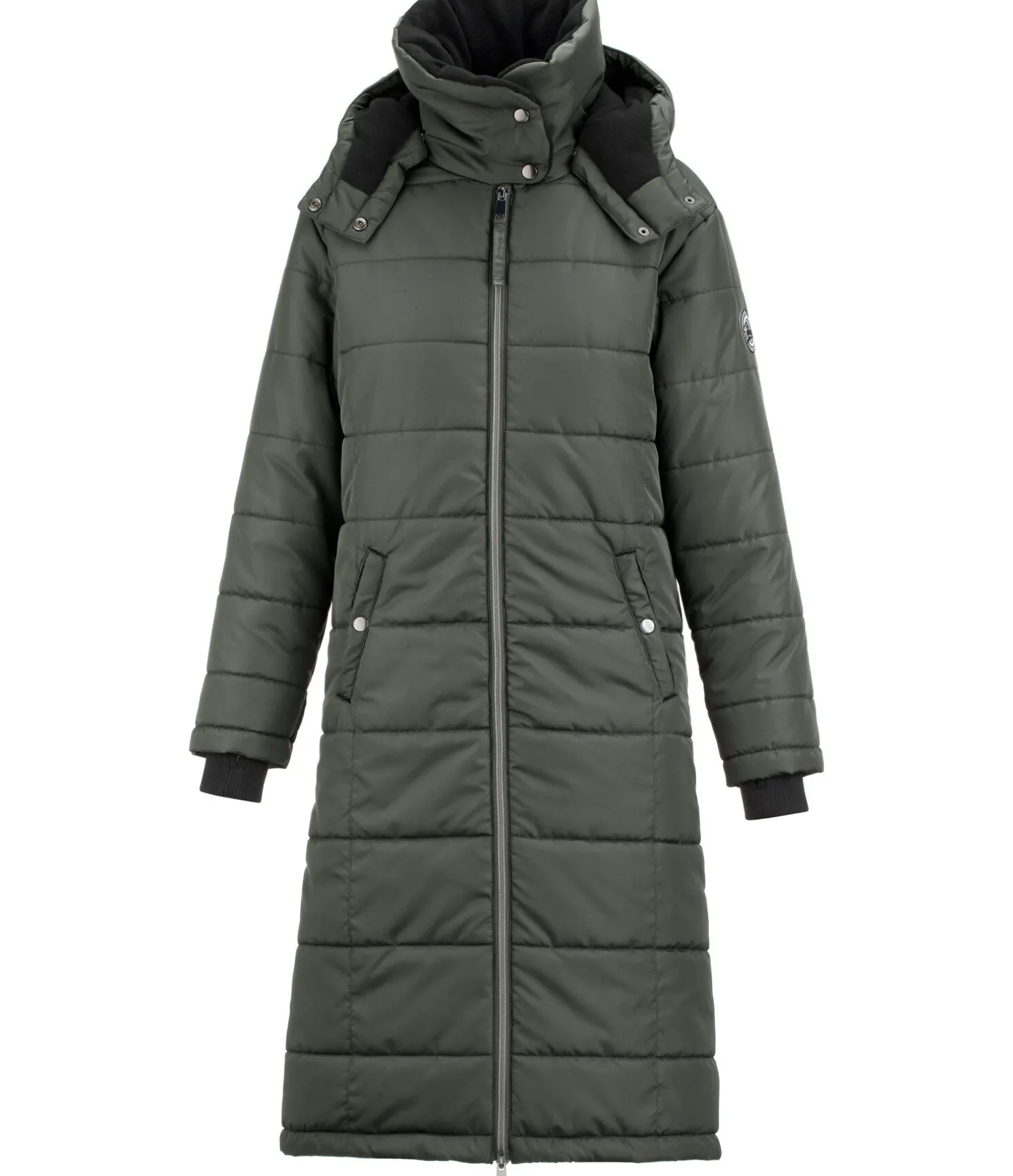 Manteau d’équitation extra long et chaud. Col haut doublé en polaire douce. Capuche doublée amovible. Bas des manches avec passe-pouce. Longue fente cavalière avec fermeture à glissière et soufflet protégeant de la pluie à l’arrière. Fermeture à glissière double sens. Courroies de cuisses. Deux grandes poches latérales avec bouton-pression et une poche intérieure zippée. Ajustable au niveau de la taille avec cordon de serrage. Rembourrage chaud. 100 % polyester.