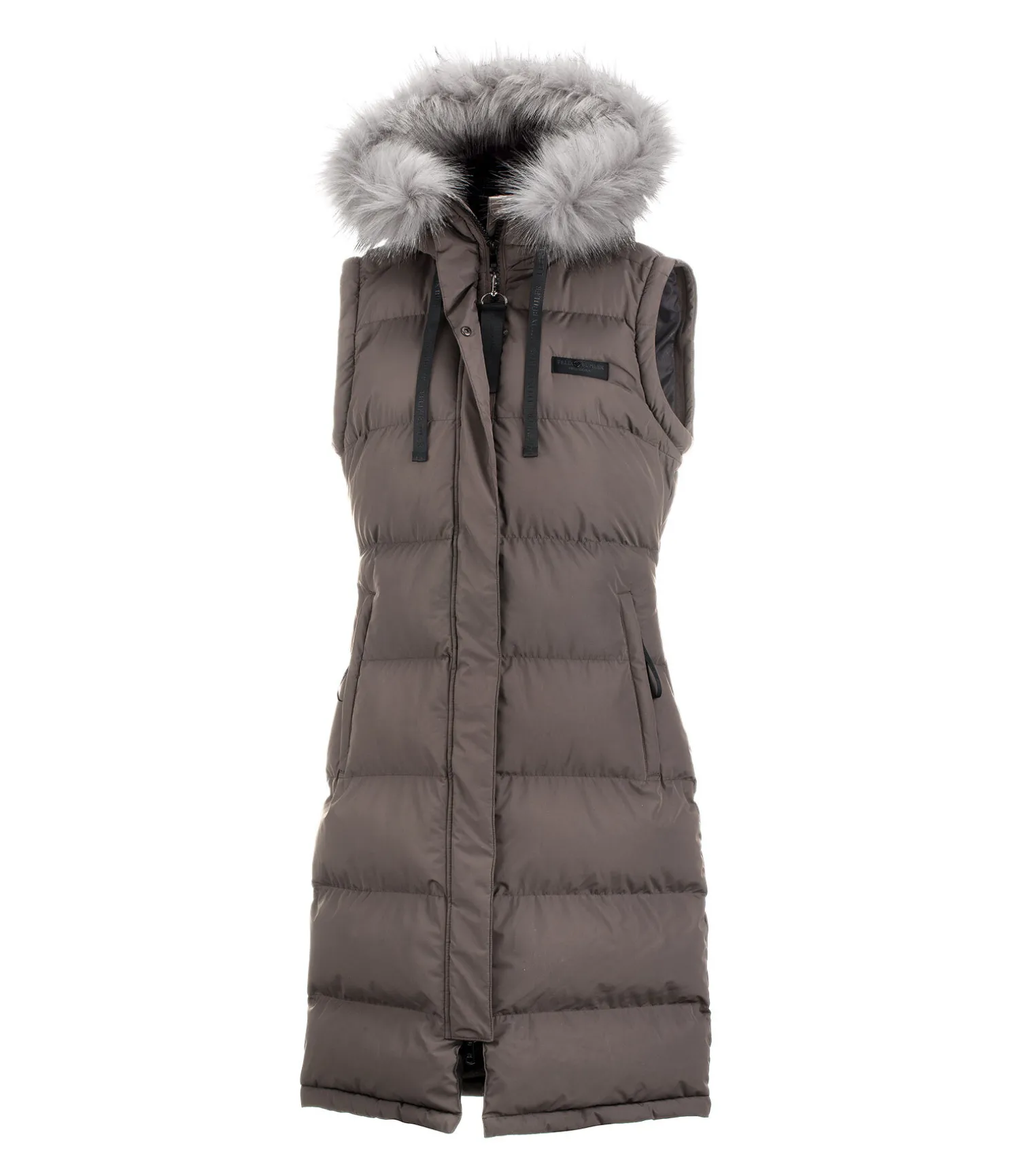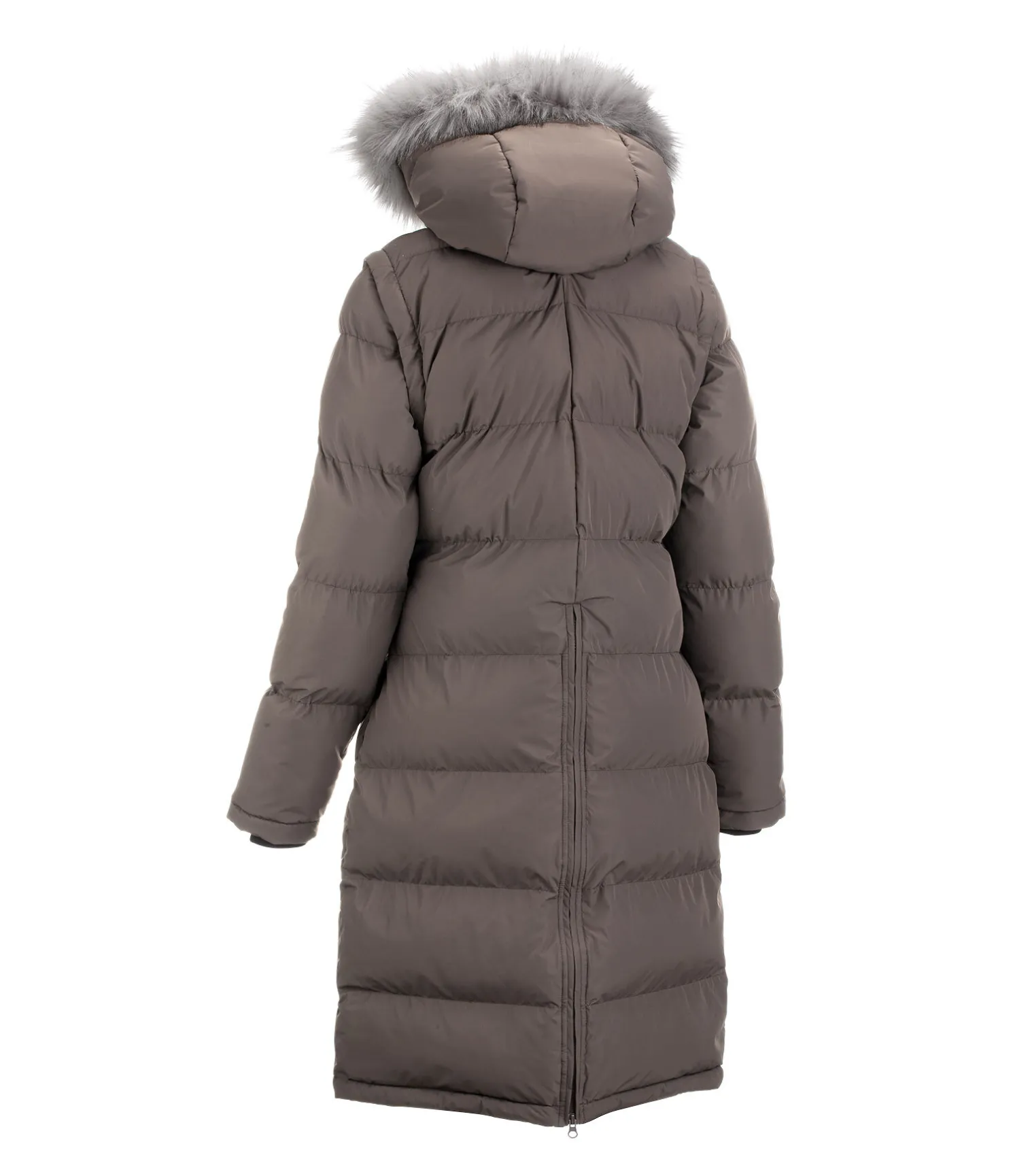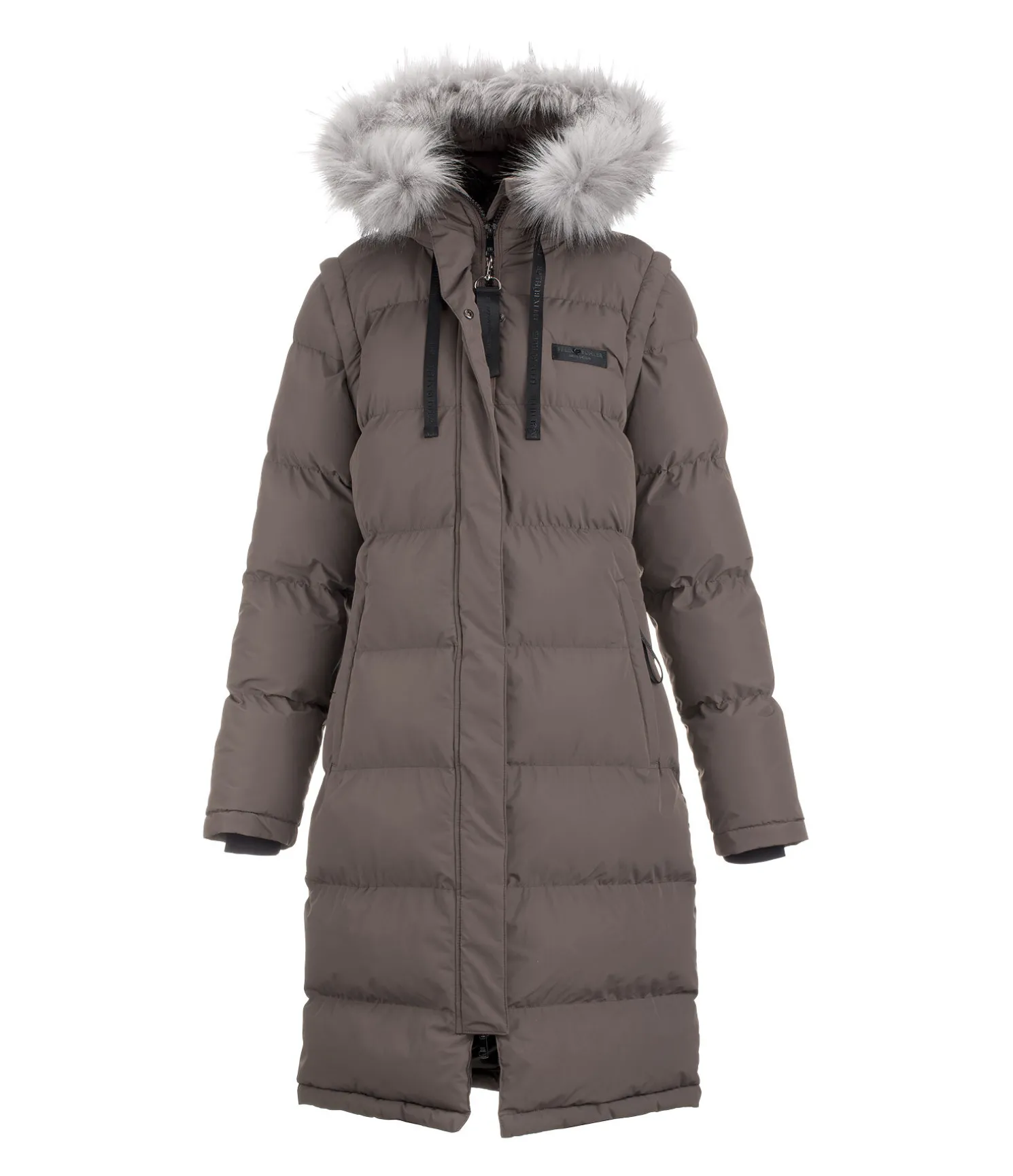 Un manteau et un gilet en une seule pièce ! Manteau d’équitation long et chaud avec manches amovibles zippées. Déperlant et coupe-vent. Convient aussi pour faire du vélo ou pour promener le chien. Capuche haute doublée en fourrure Teddy, ajustable par cordon de serrage. Capuche avec bordure amovible en fourrure synthétique. Bouton-pression pour fixer la capuche dans le dos. Garnissage doux imitation duvet. Fermeture à glissière double sens avec protège-menton. 2 poches avant zippées et doublées en polaire douce. Bas des manches élastiqué et coupe-vent. Longue fente cavalière zippée d’équitation à l’arrière. Taille réglable. Badge Felix Bühler sur la poitrine. 100 % polyester.
