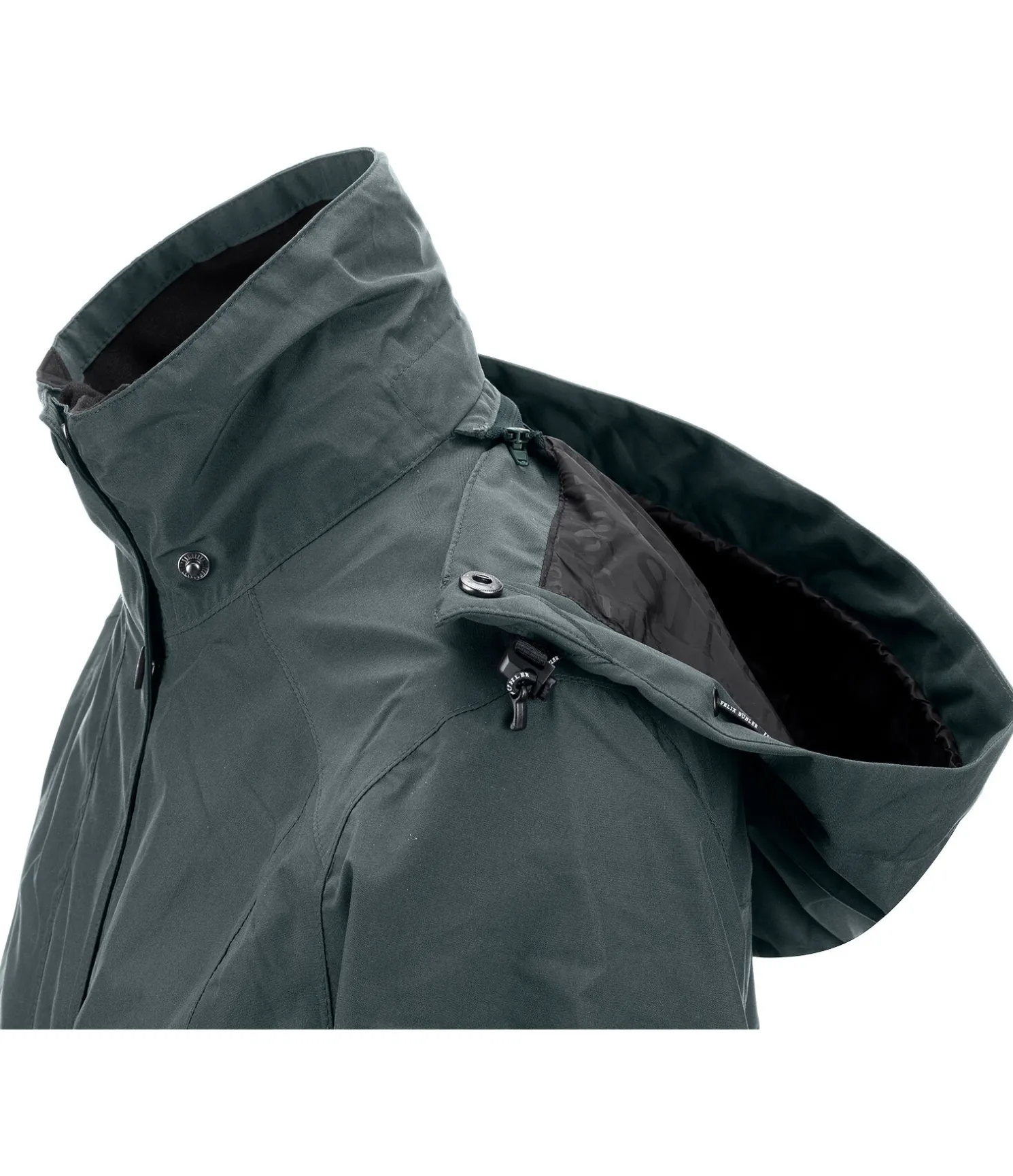 Le manteau d’équitation technique Felix Bühler offre 3 styles différents : tu peux porter chaque couche séparément ou ensemble ! Le manteau extérieur coupe-vent, imperméable (10.000 mm) et respirant possède une capuche réglable et amovible, pouvant être fixée dans le dos par bouton-pression. Fermeture à glissière double sens dissimulée avec protège-menton, 2 poches zippées imperméables, cordon de serrage à la taille, bas des manches réglables par patte auto-agrippante avec imprimé réfléchissant, 1 poche intérieure zippée, 1 longue fente cavalière avec sous-patte et fermeture à glissière à l’arrière. La doublure en polaire se fixe avec une fermeture à glissière et peut donc être portée avec ou sans le manteau extérieur. Cette doublure a un col montant, 2 poches zippées et une fente cavalière avec fermeture à glissière à l’arrière. 100 % polyester.