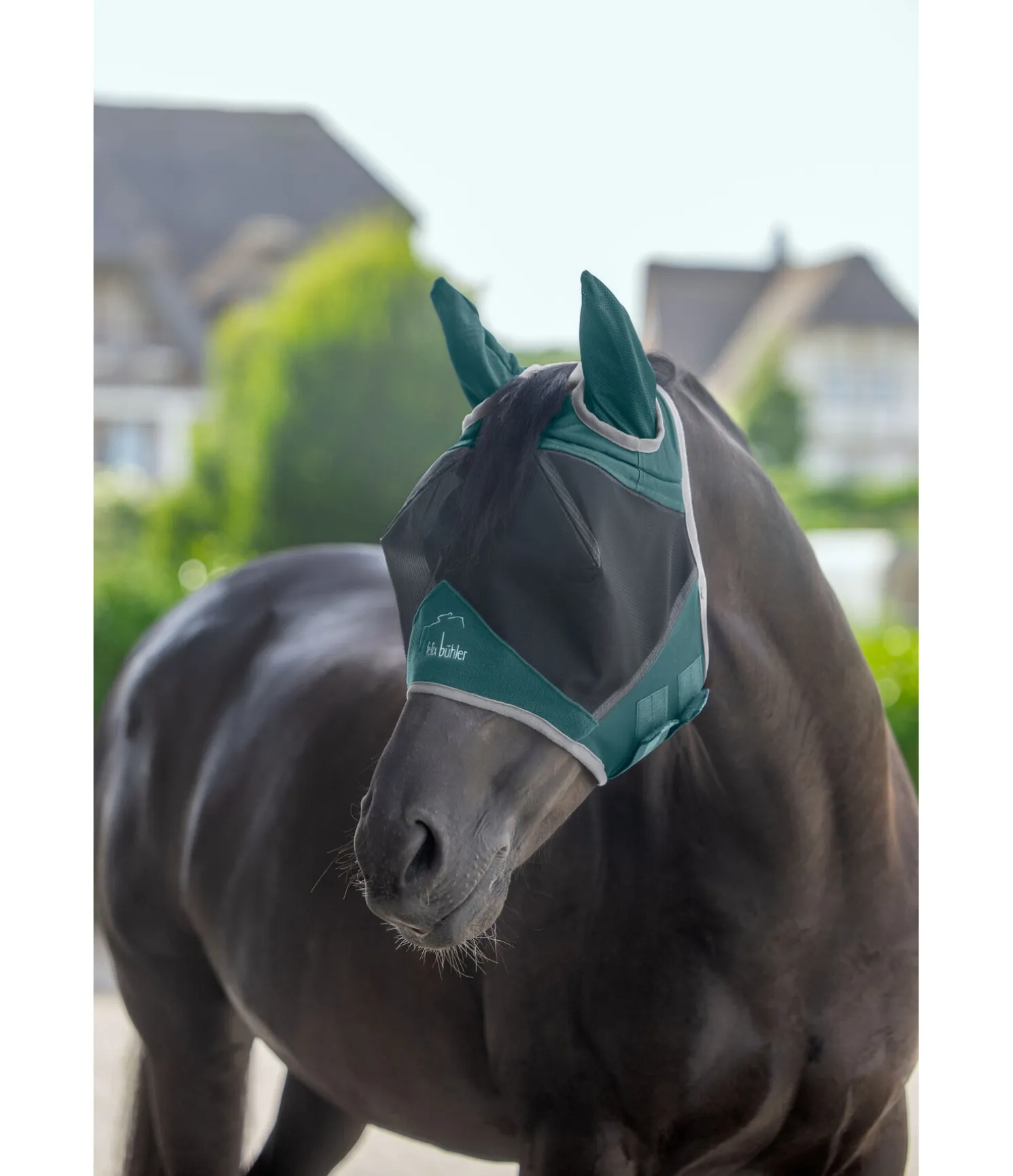 Masque anti-mouches classique pour chevaux sensibles. Filet particulièrement résistant à maille serrée Ripstop avec coutures renforcées. Bloque au moins 60 % des rayons UV tout en offrant une bonne visibilité. Filet conçu dans une matière respirante pour protéger les oreilles. Protège parfaitement les oreilles et les yeux contre les moustiques et autres insectes. Doublure en tissu éponge absorbant au niveau du front pour un confort optimal et bordure en polaire autour du chanfrein pour éviter les irritations dues aux frottements, élastiqué autour de l’encolure pour un ajustement parfait. Avec passage de toupet et double patte auto-agrippante pour un maintien sûr. 100 % polyester.