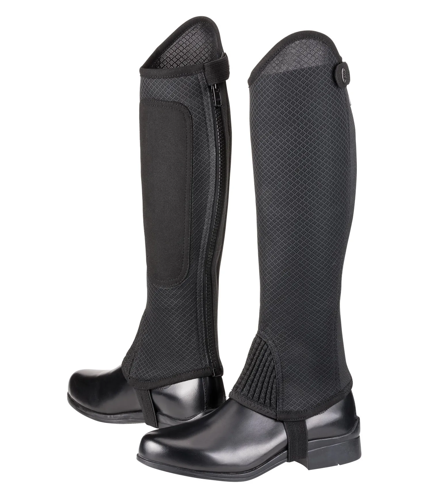 Mini-chaps conçues en mesh respirant favorisant une évacuation optimale de la transpiration. Renfort intérieur en synthétique Amara au niveau du mollet afin d’offrir un meilleur maintien en selle. Fermeture à glissière YKK arrière sécurisée par un bouton-pression pour maintenir le zip fermé. Empiècement élastiqué le long de la fermeture à glissière pour garantir un ajustement optimal. Sous-pied robuste.