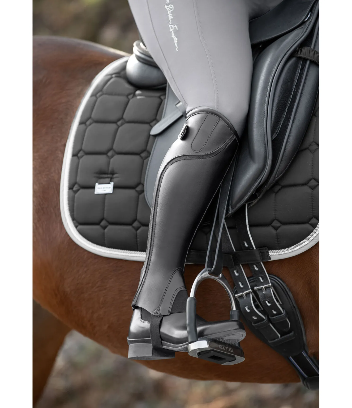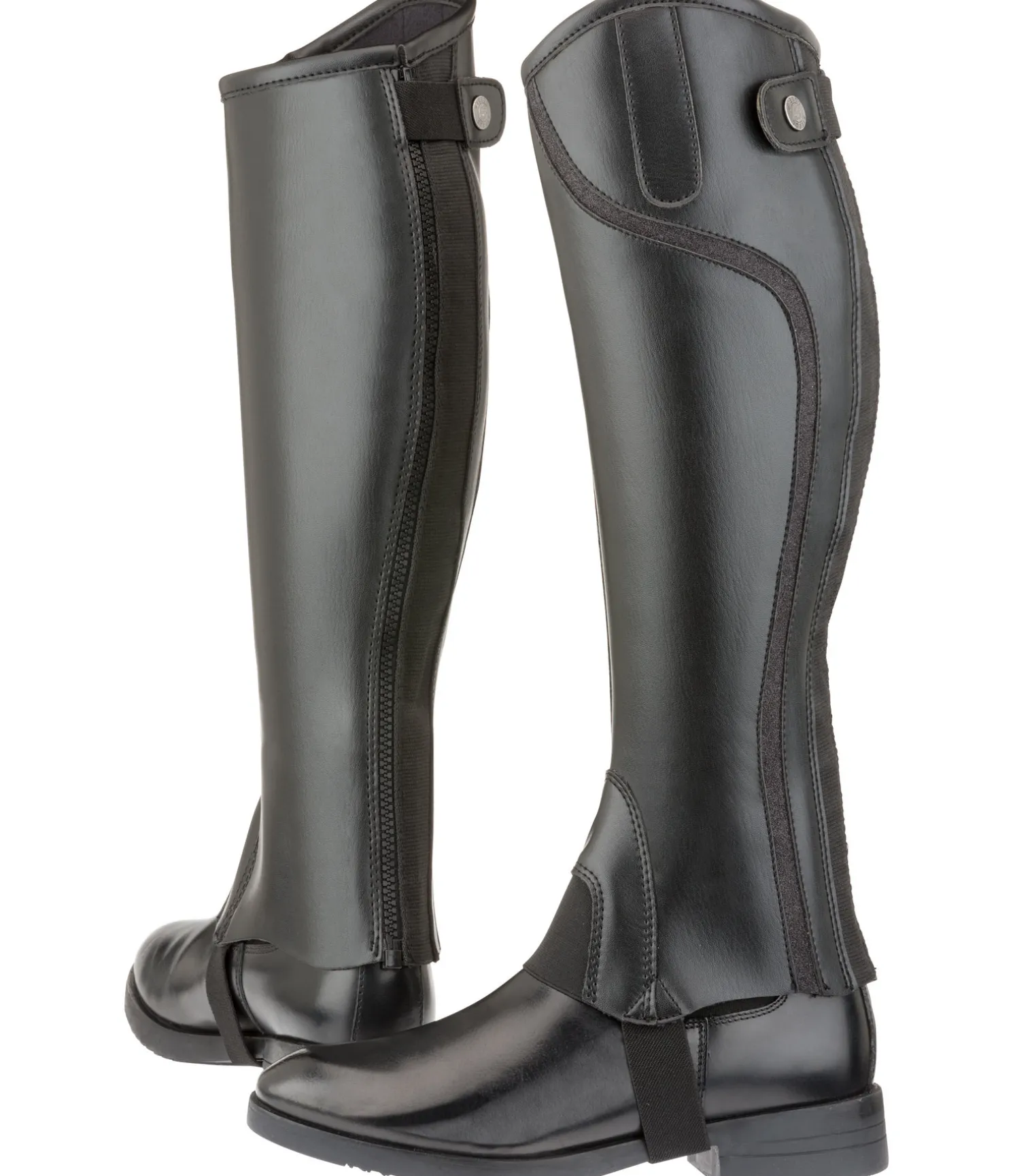 Ces mini-chaps à l’aspect de bottes d’équitation attirent tous les regards grâce à leur ruban scintillant intégré. Leurs points forts sont notamment la coupe parfaite et l’aspect élégant du synthétique. Les empiècements élastiqués le long de la fermeture à glissière YKK robuste à l’arrière assurent un ajustement parfait au mollet.