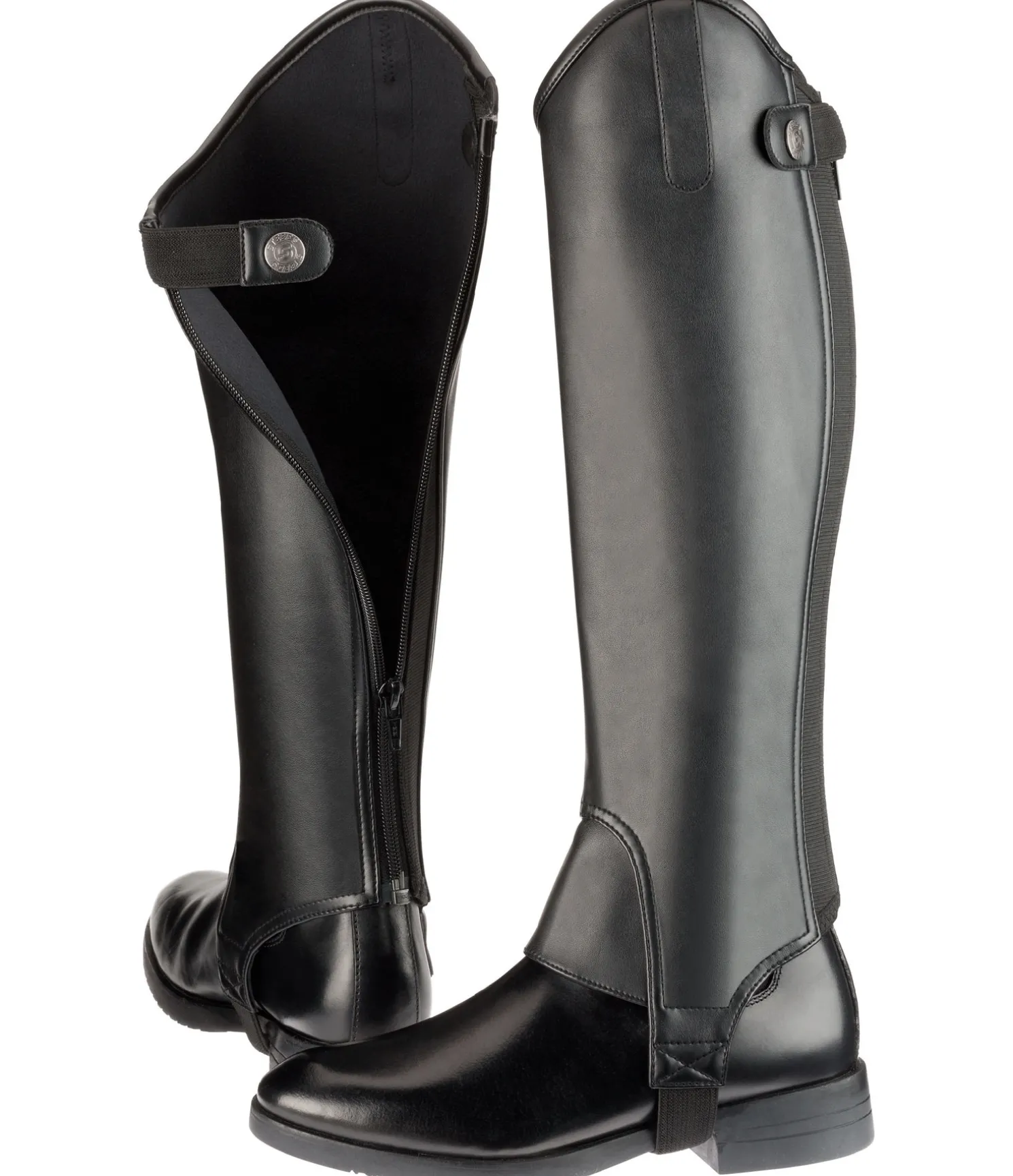 Mini-chaps légères dans un design évoquant des bottes cavalières en matière SYLKA résistante et facile d’entretien. Désormais avec avancée cachant la chaussure pour un aspect élégant. Détails supplémentaires : empiècement élastiqué au mollet, fermeture à glissière YKK avec bouton-pression à l’arrière et sous-pieds résistants.