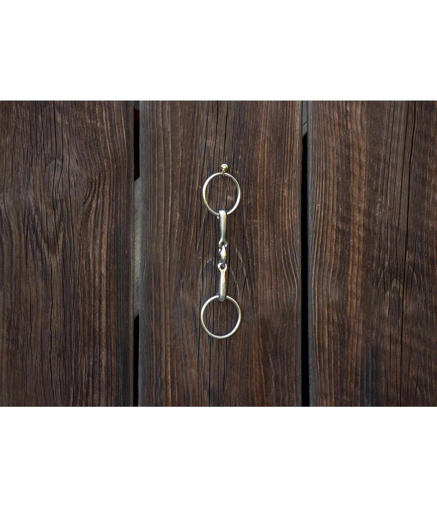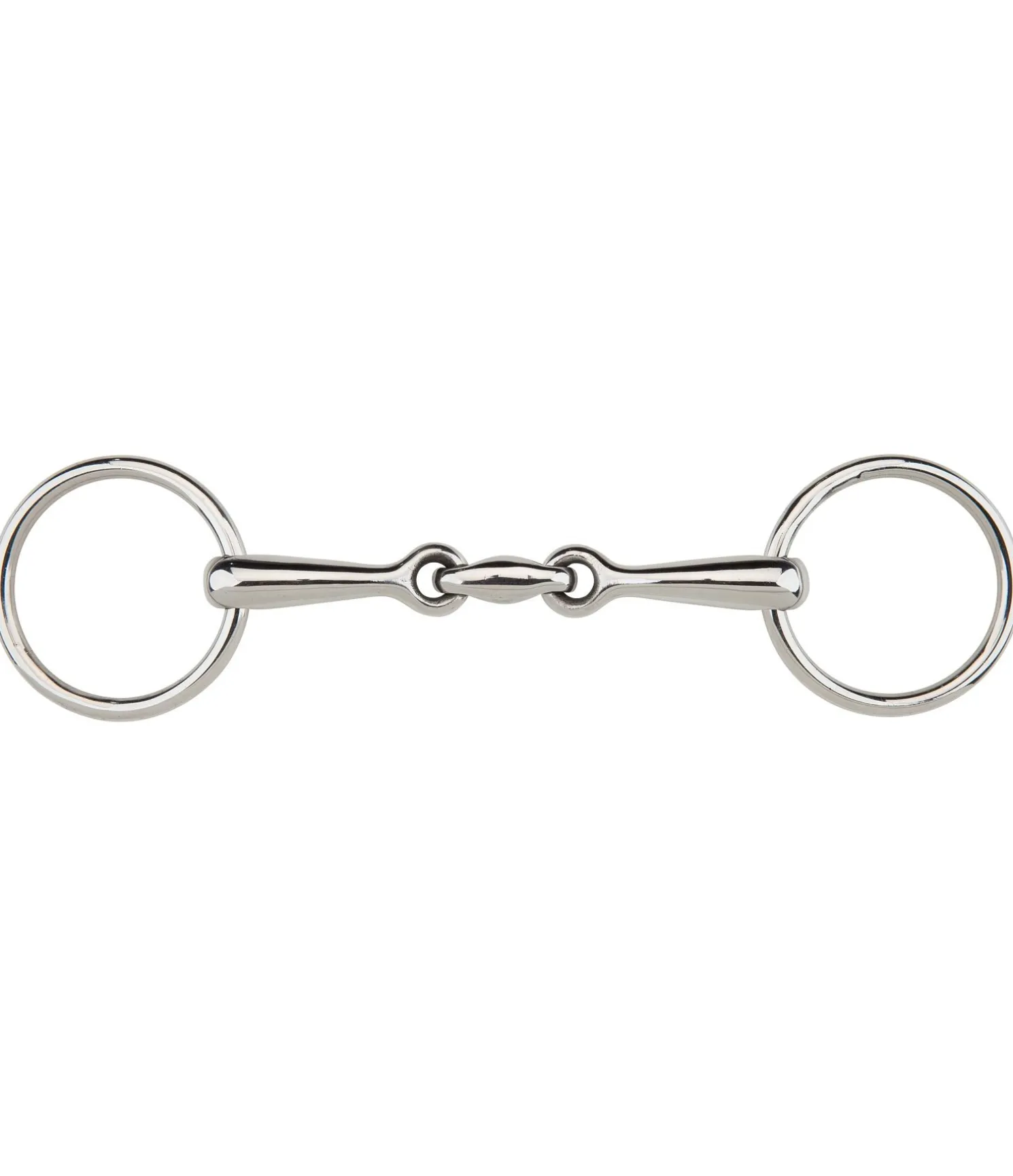 Mors de filet double brisure pour bride. En acier inoxydable. Épaisseur des canons : 14 mm, diamètre des anneaux : 60 mm.