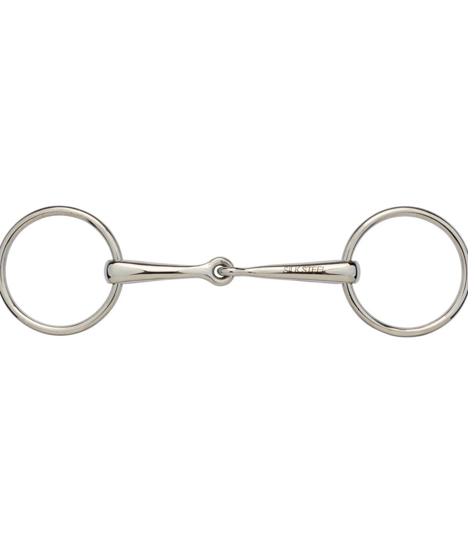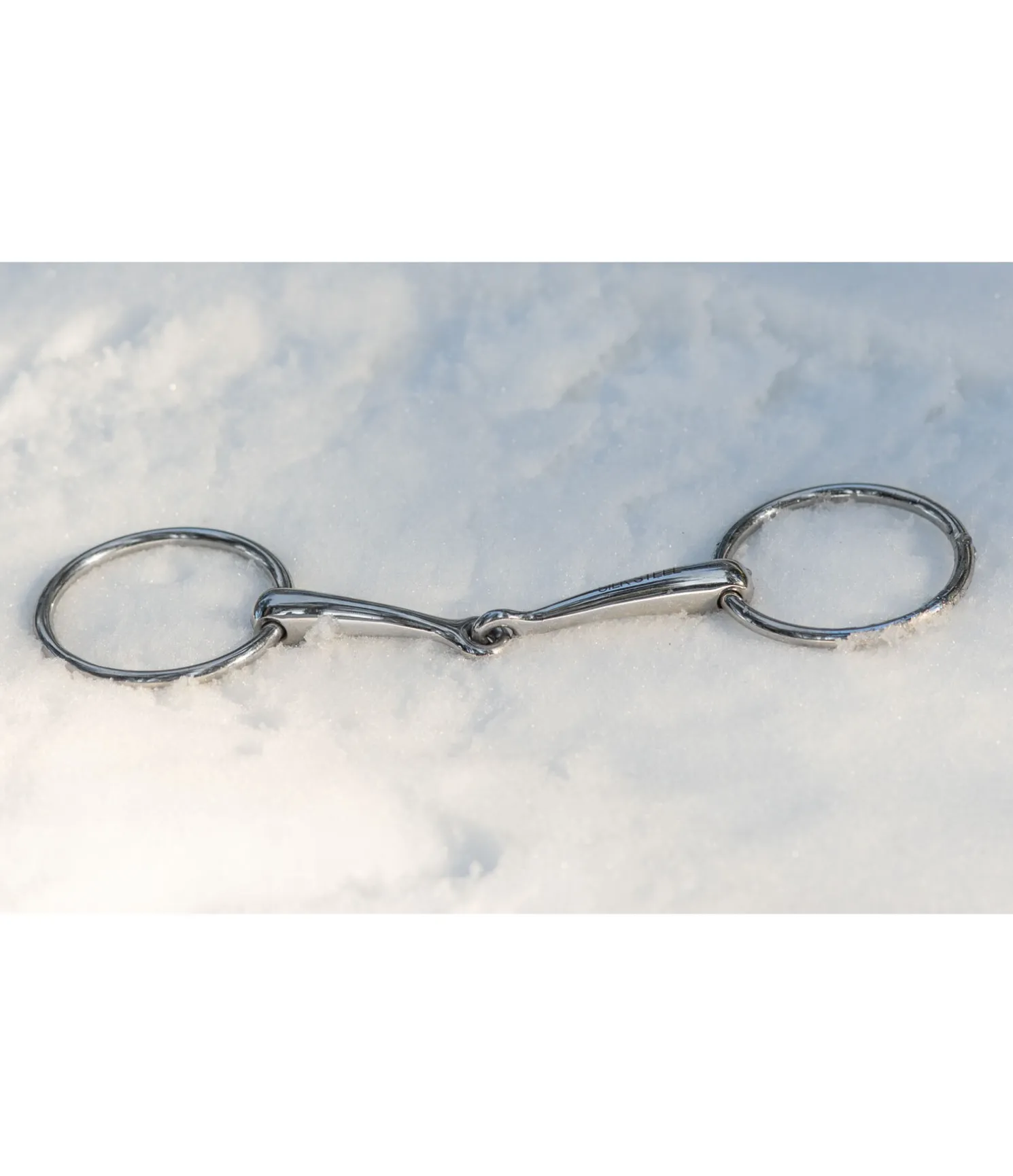Mors de filet de bride simple brisure en acier inoxydable. Épaisseur des canons : 14 mm. Diamètre des anneaux : 70 mm.
