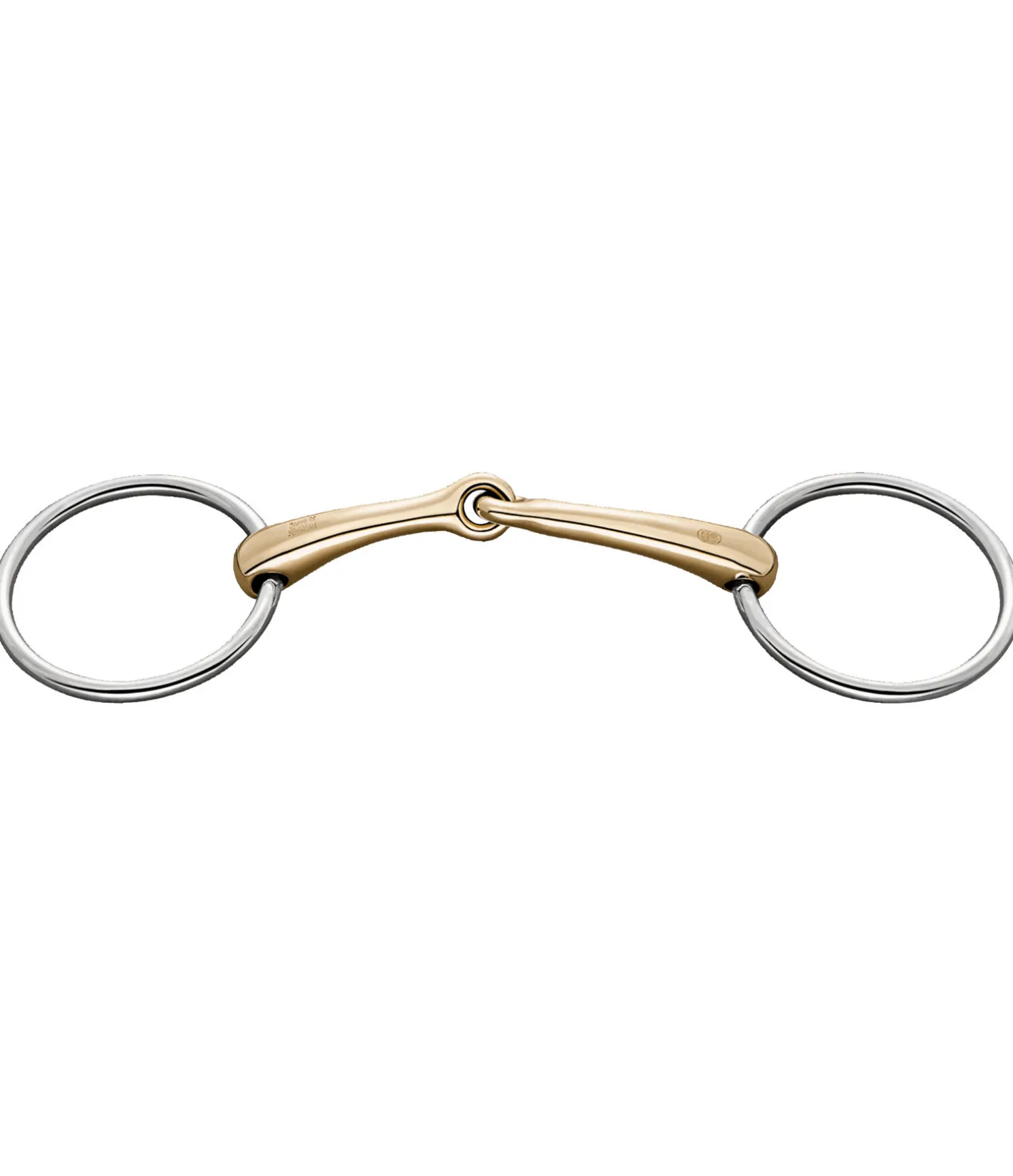 Mors simple brisure. Épaisseur 16 mm. Sa forme ergonomique permet une action plus rapide et ciblée sur la langue. Contrairement aux mors habituels à simple brisure, la répartition de la pression s’exerce de manière équilibrée sur les deux côtés de la langue.